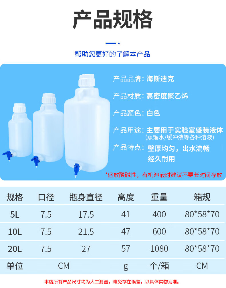 海斯迪克 实验室放水瓶 hs-798 20L 1个