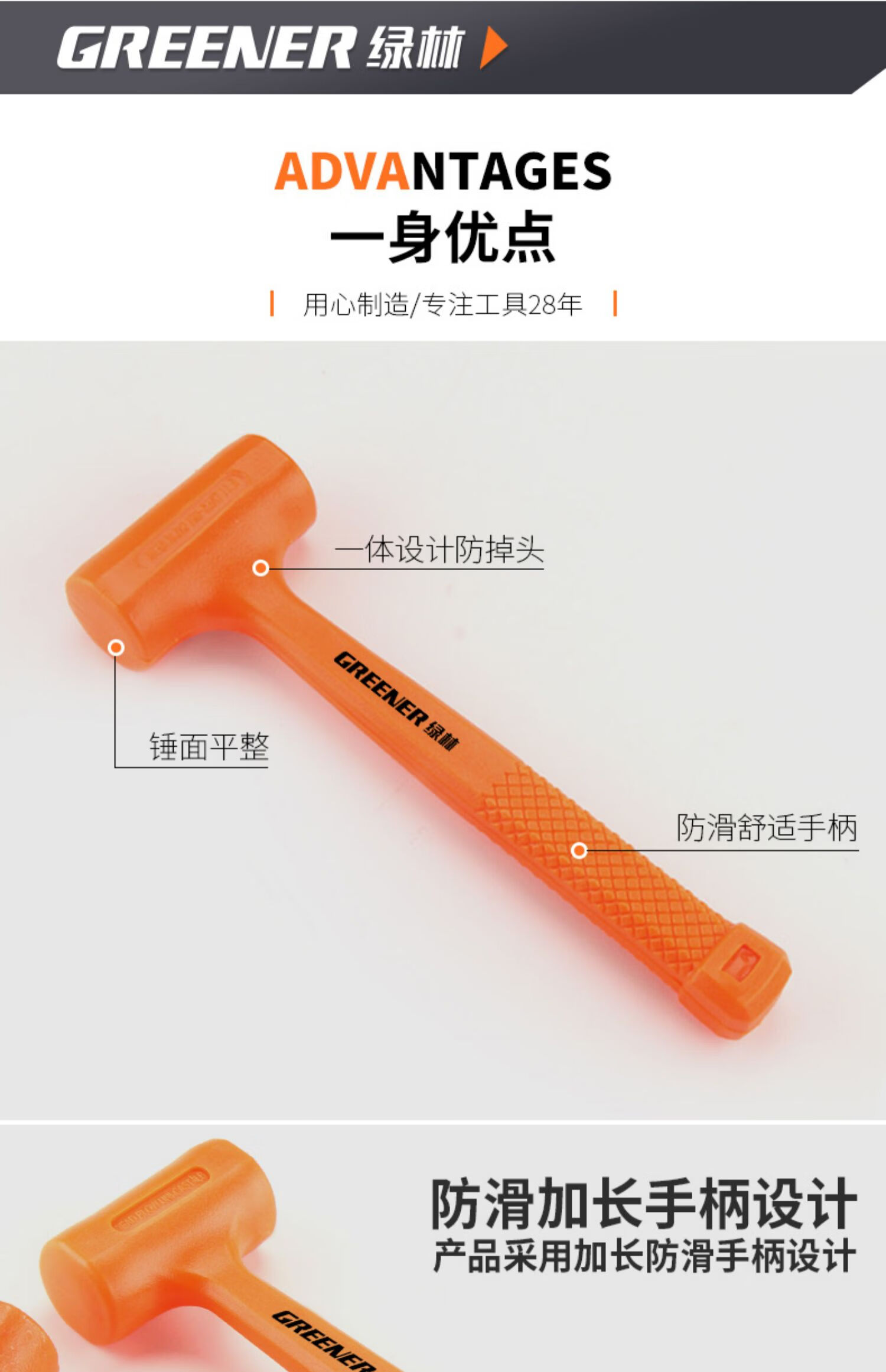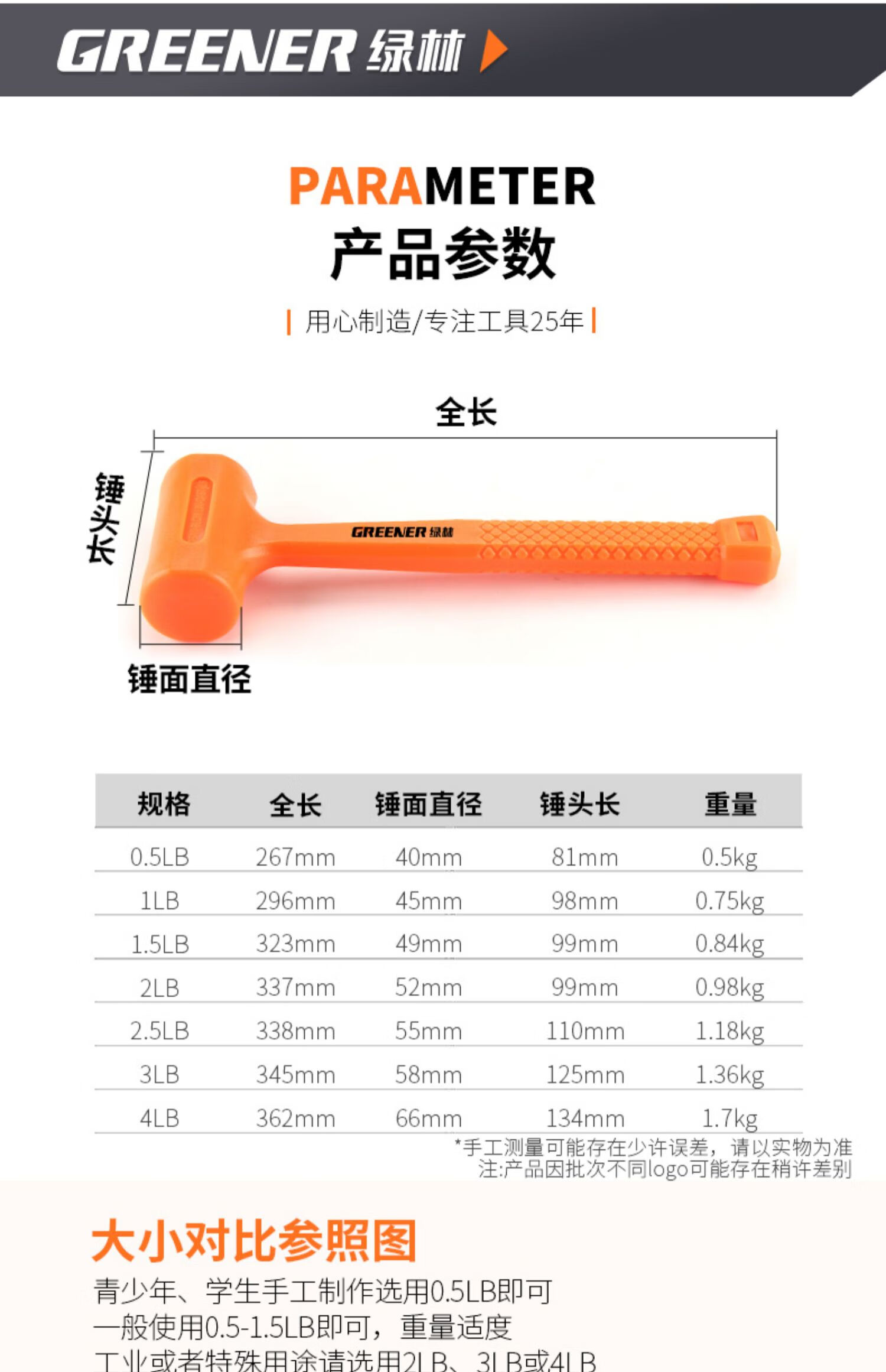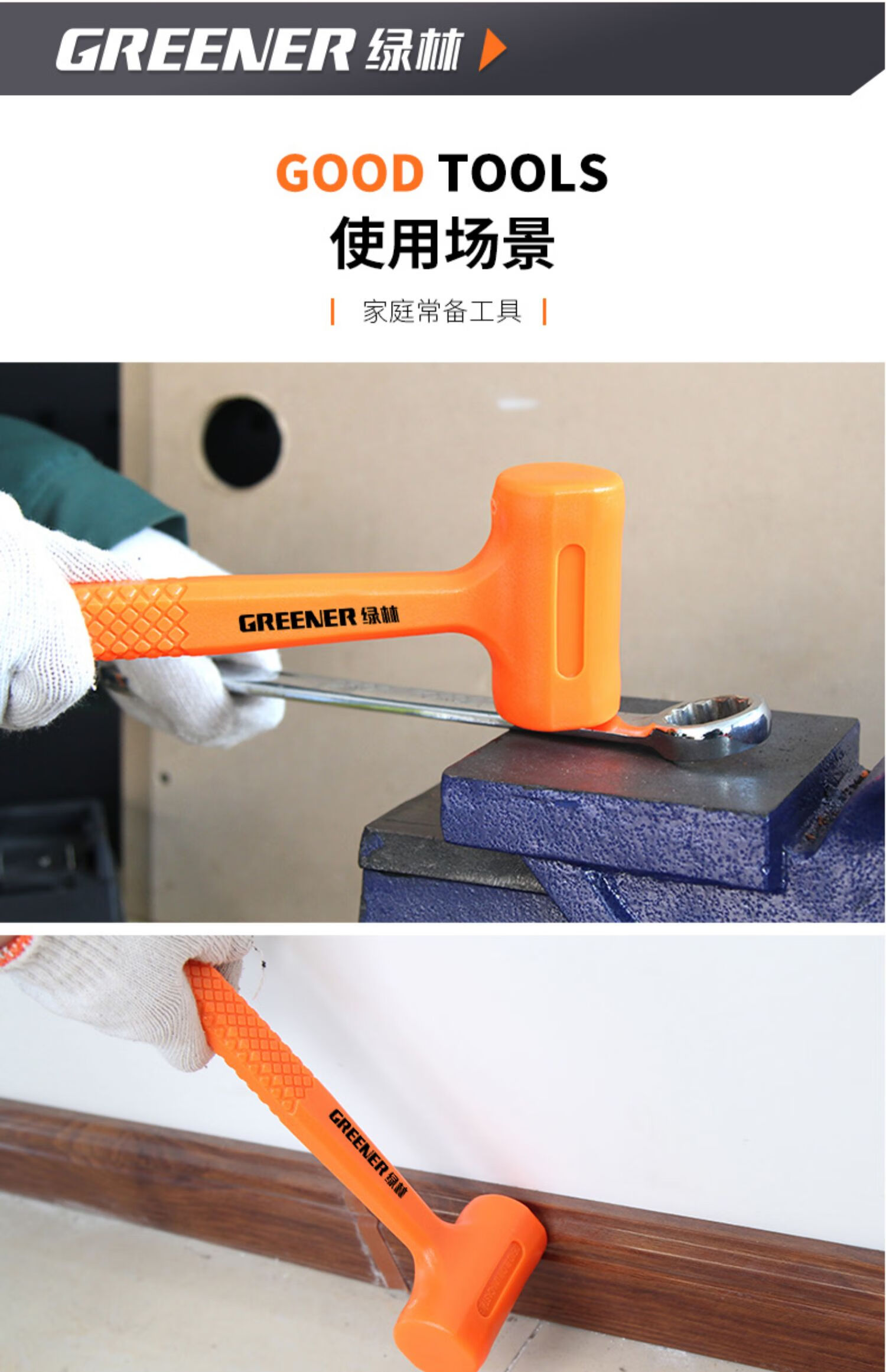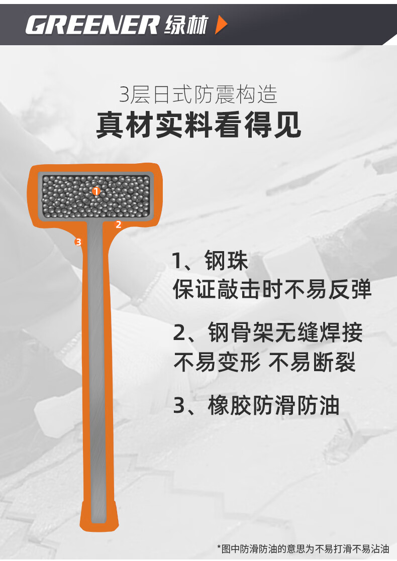 绿林 无弹力橡胶锤 323×99×49mm 1.5LB 1把
