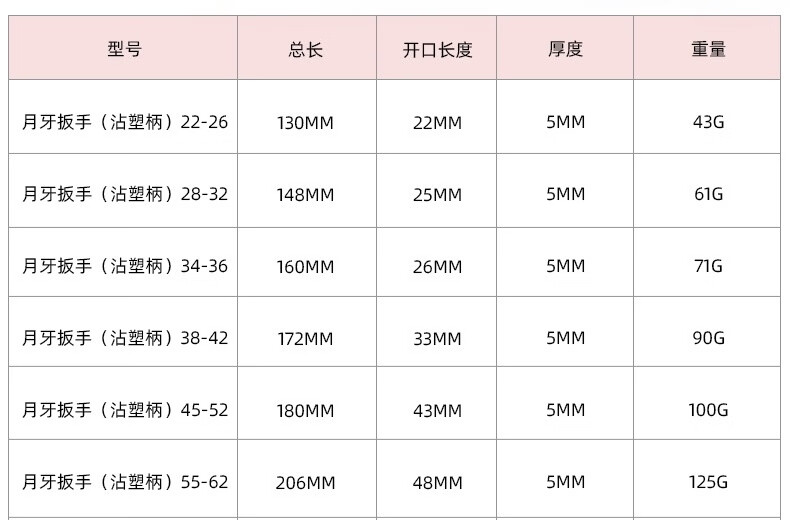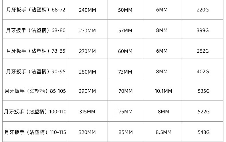 国产通用 月牙扳手套装 22-110 9件套+收纳布袋 1套