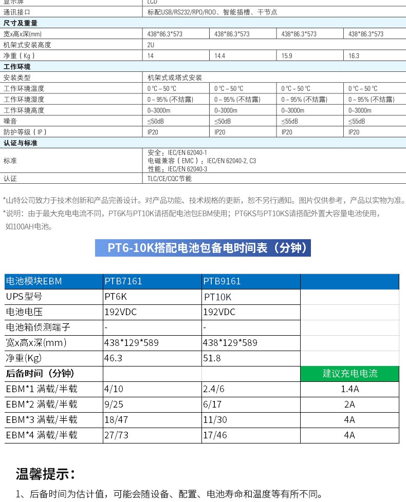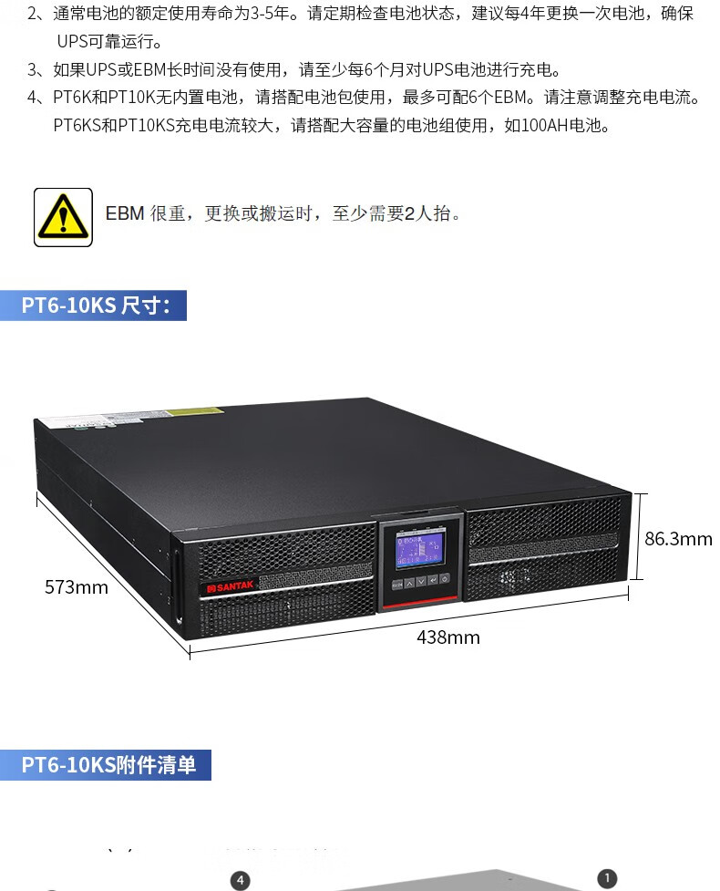 山特 灵霄系列 UPS不间断电源机架式 PT6KS(不含卡) 6kVA 1台