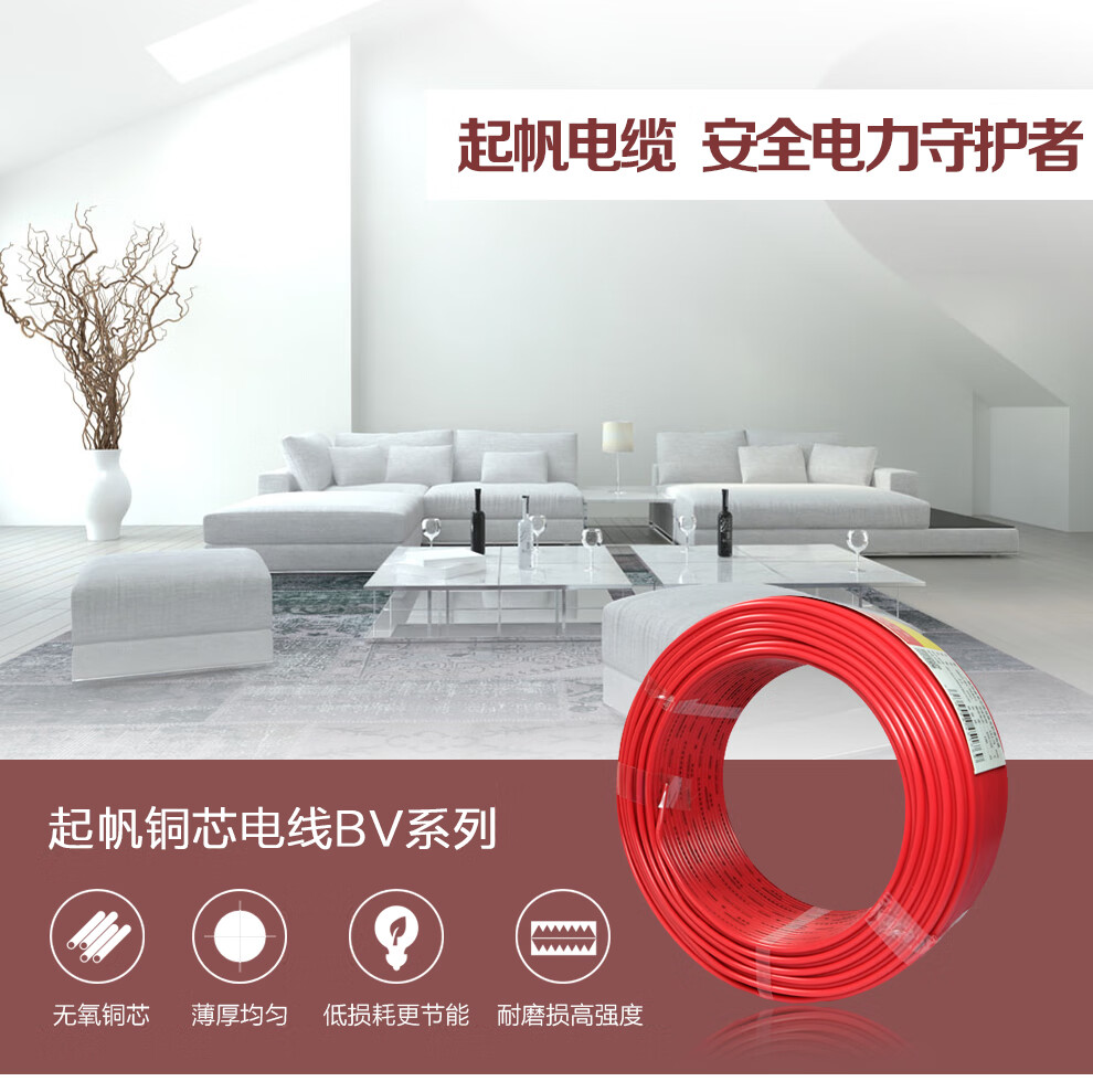 起帆 铜芯聚氯乙烯绝缘布电线 BV-300/500V-1×1 蓝色 100米 1卷