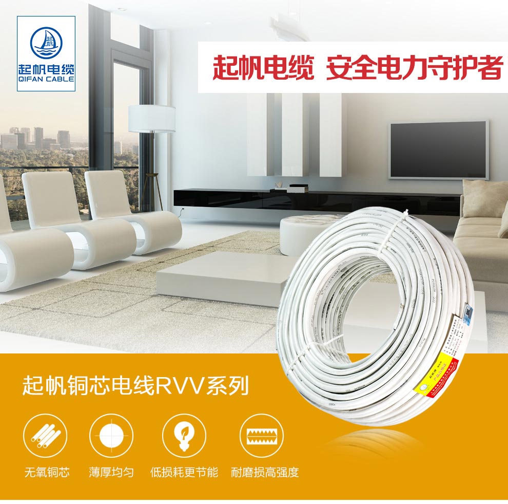 起帆 铜芯聚氯乙烯绝缘聚氯乙烯护套软电线 RVV-300/500V-3×0.75 白色 100米 1卷
