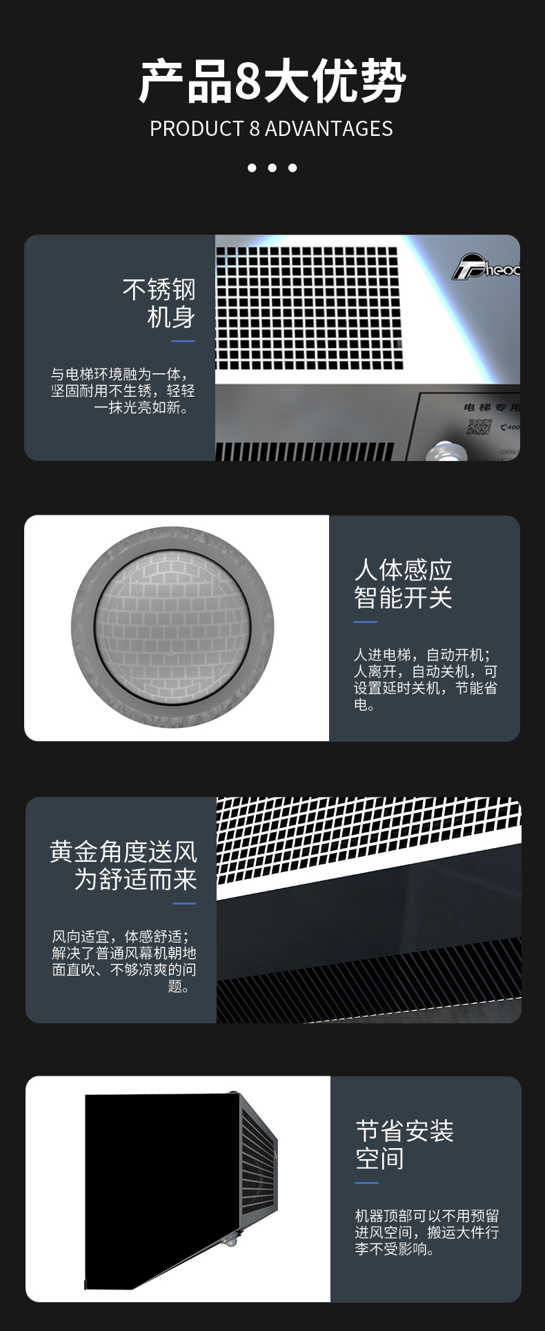 西奥多 电梯专用风幕机 FM-1008DT4-M 不锈钢人体感应 60W 220V 820×142×172mm 1台