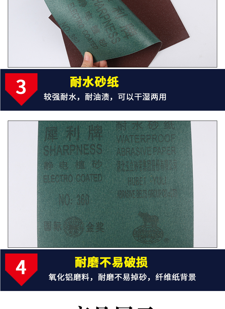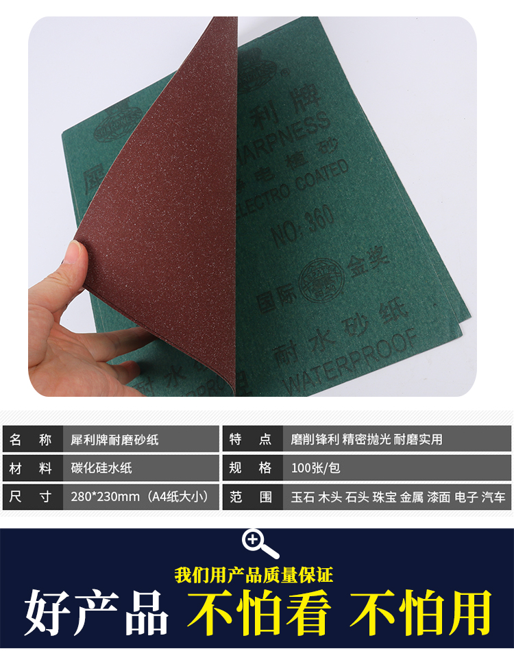 犀利 耐水砂纸 280×230mm 180目 100张 1包