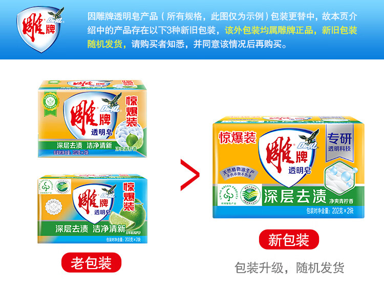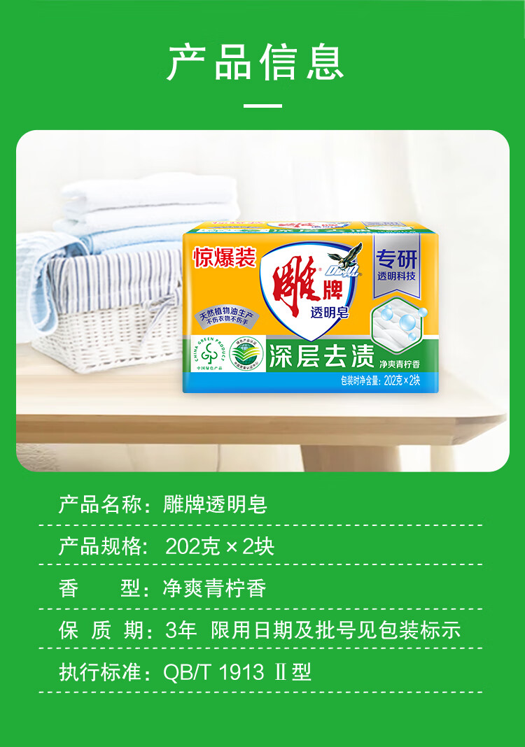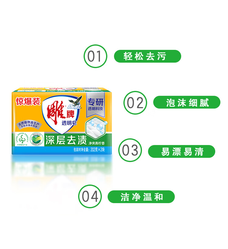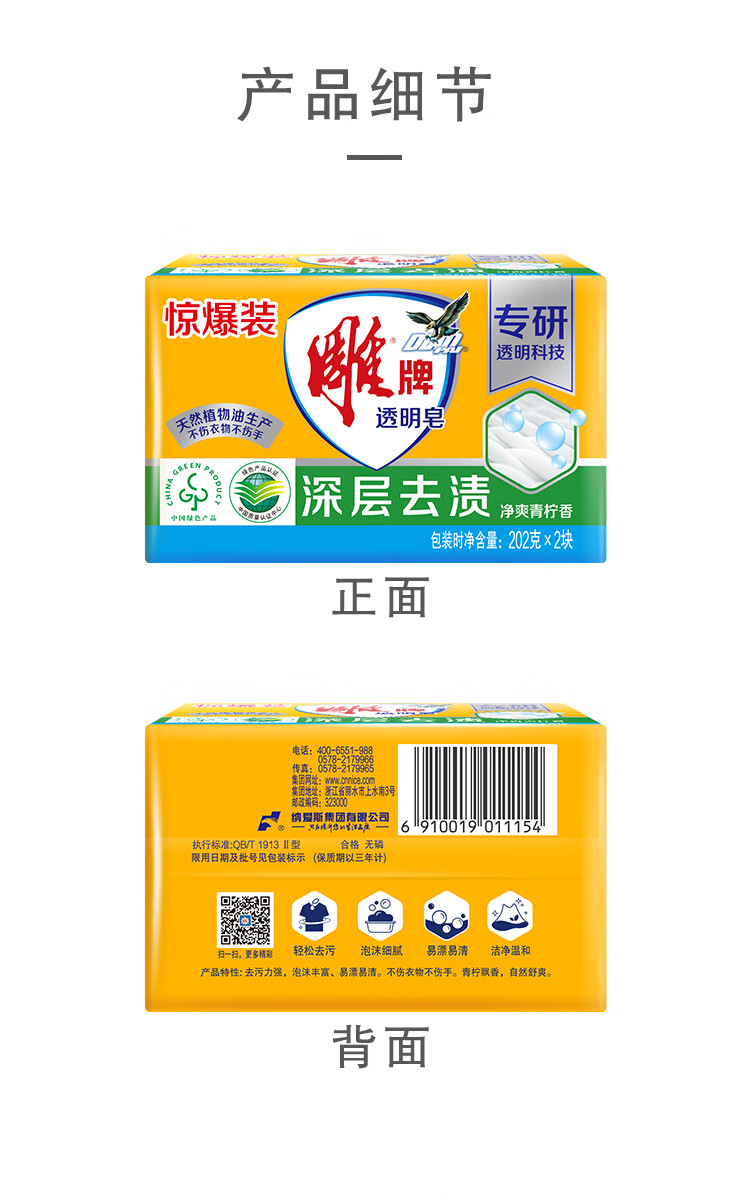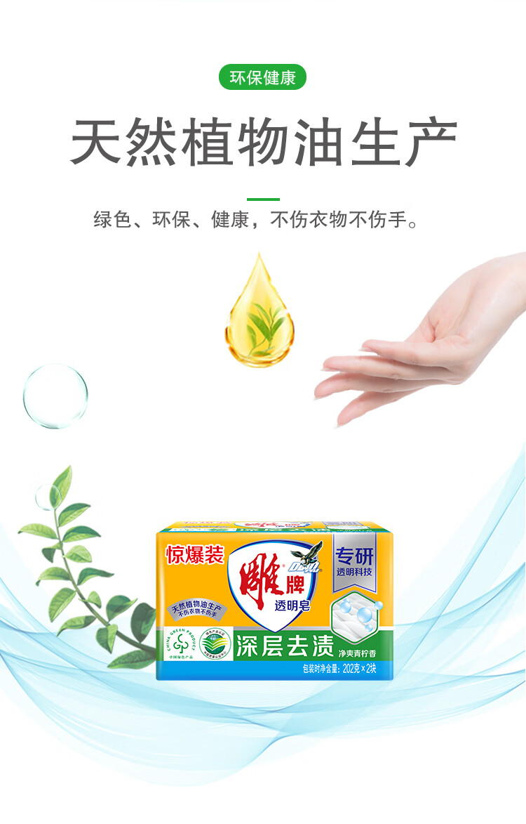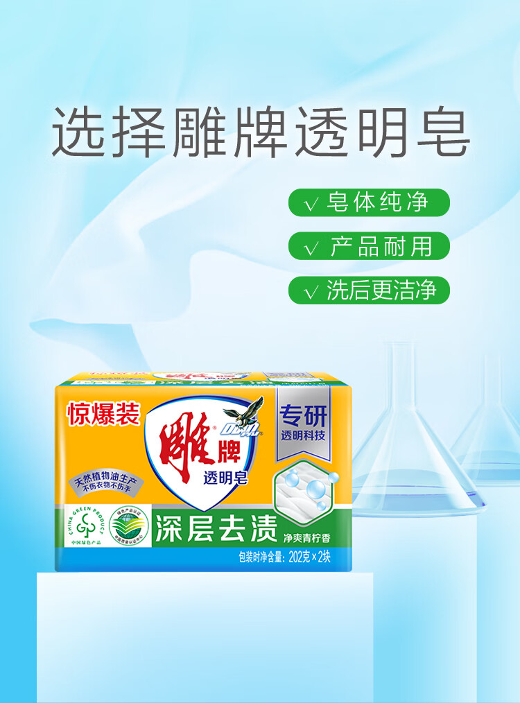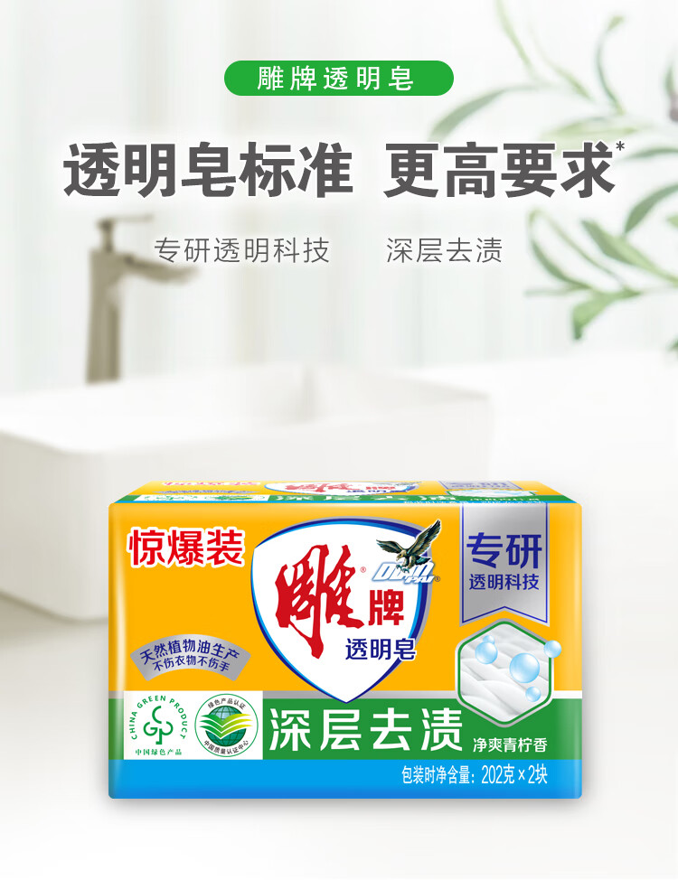 雕牌 净爽青柠香透明肥皂 202g×2块 1组