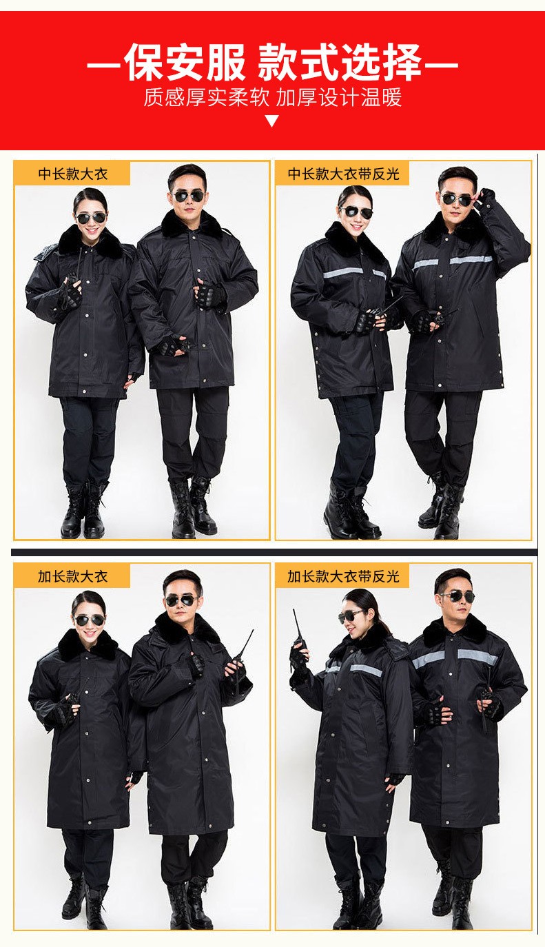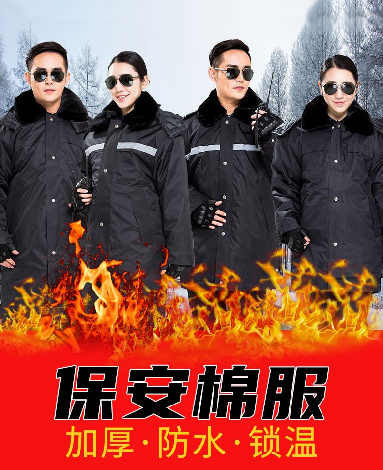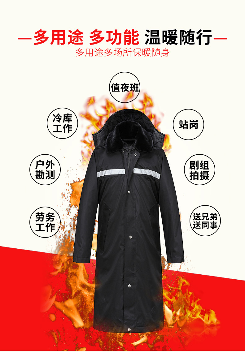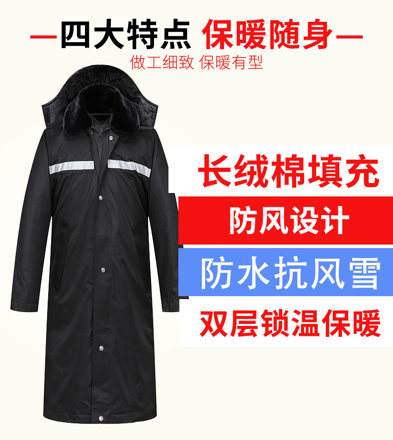 君御 多功能长款棉衣保安服 带反光条 XL码 1件
