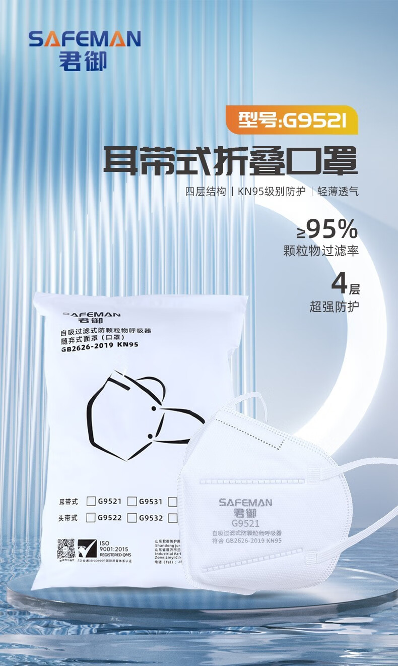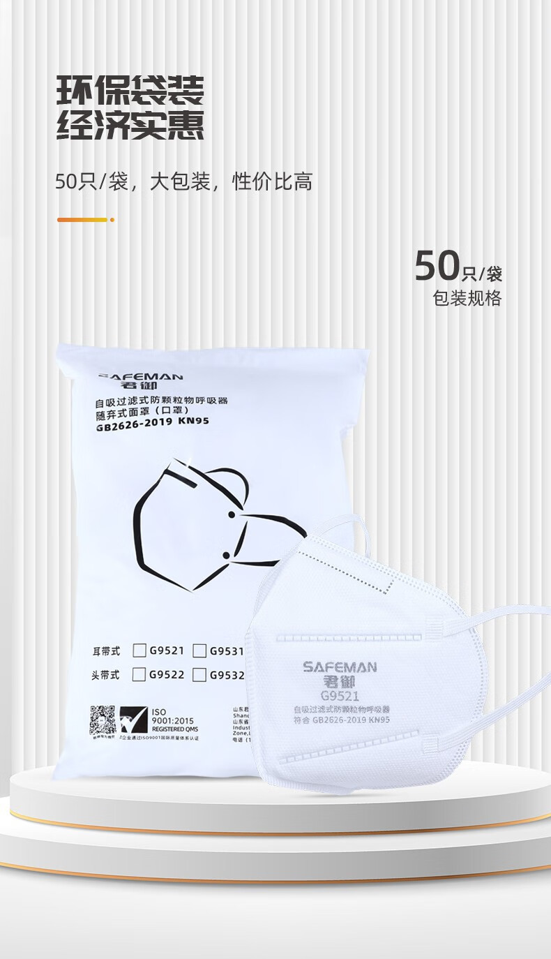 君御 耳带式折叠口罩 G9521 环保装 50只 1袋