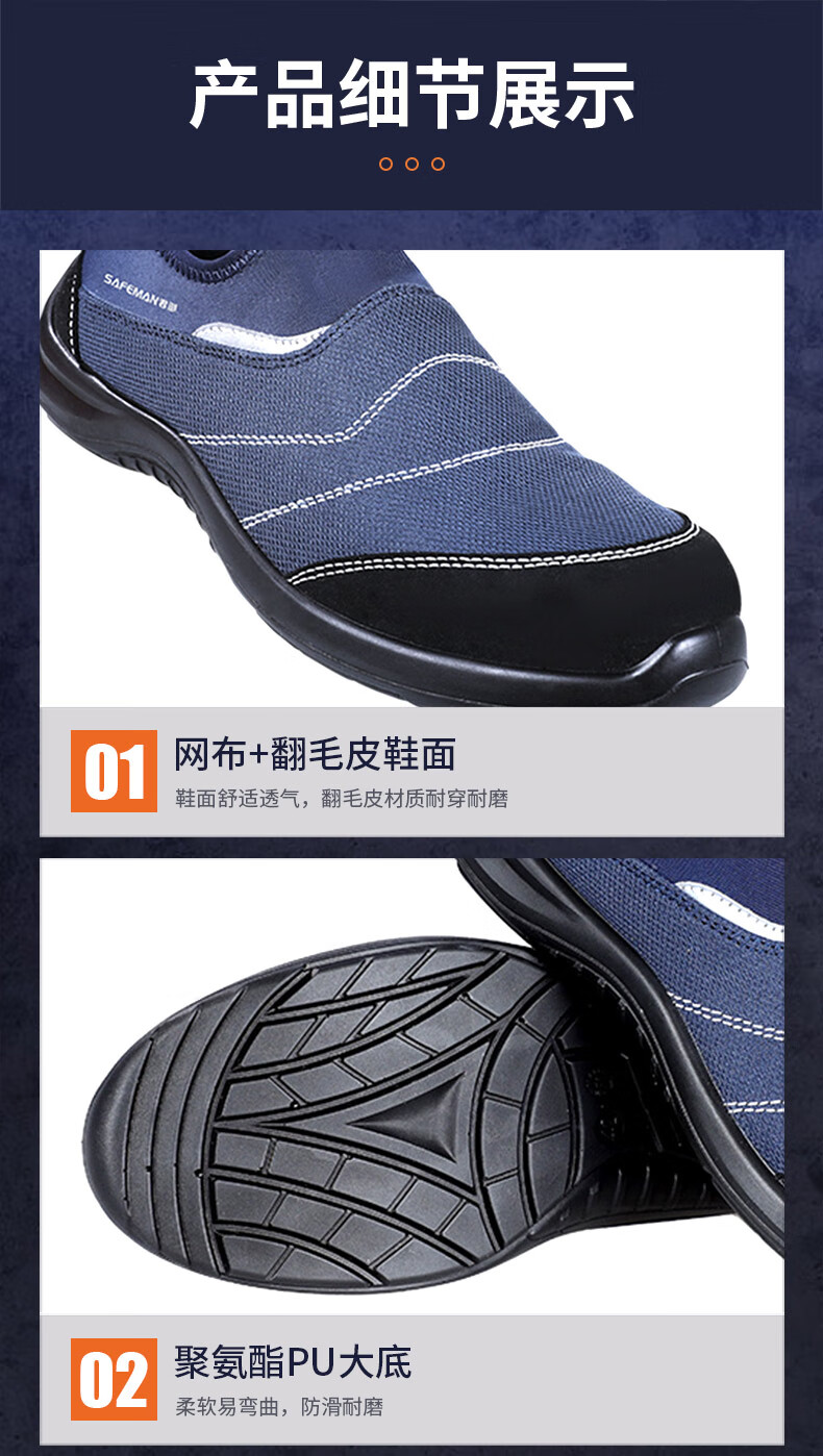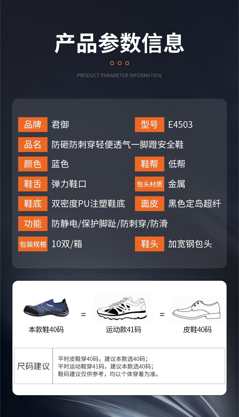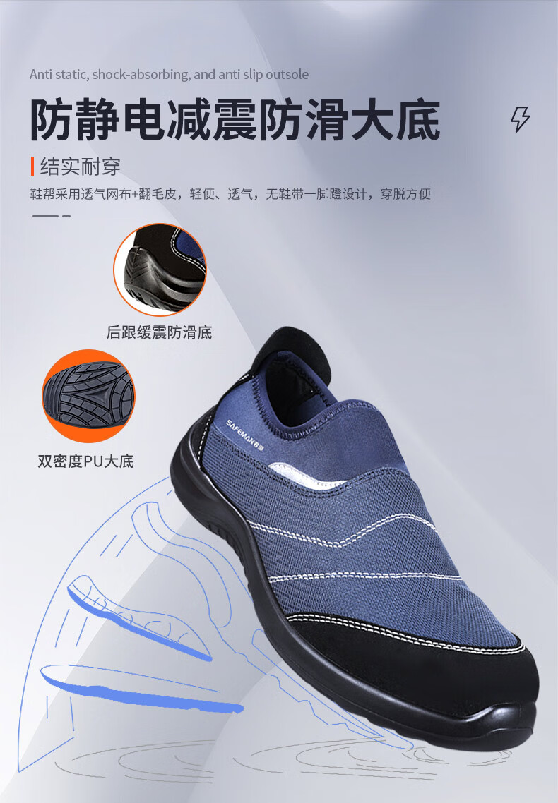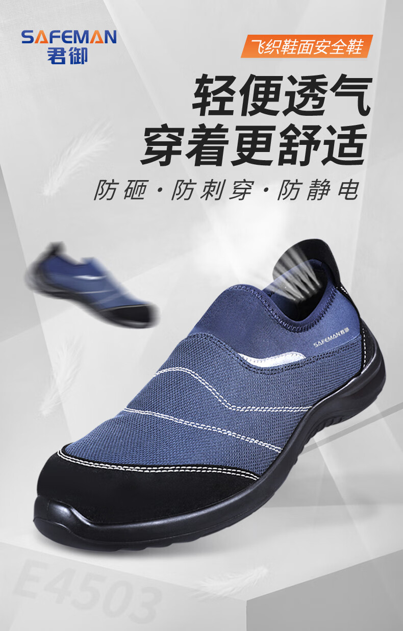 君御 防砸防刺穿防静电安全鞋 E4503 蓝色 36码 1双