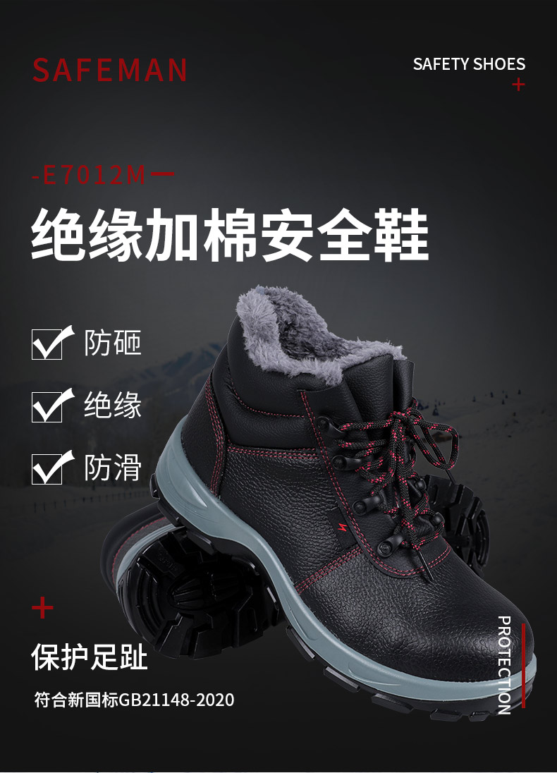 君御 6KV防砸电绝缘安全鞋 E7012M 加棉中帮 39码 1双