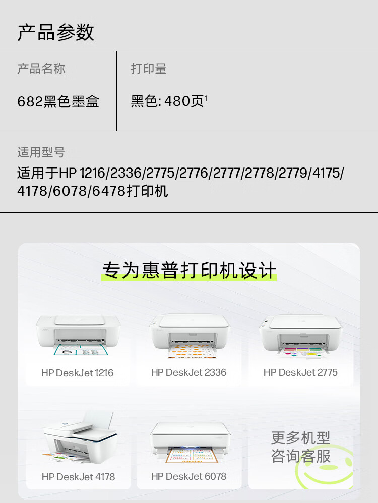 惠普 墨盒 682 黑色 480页 1个