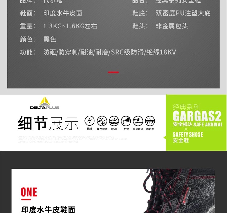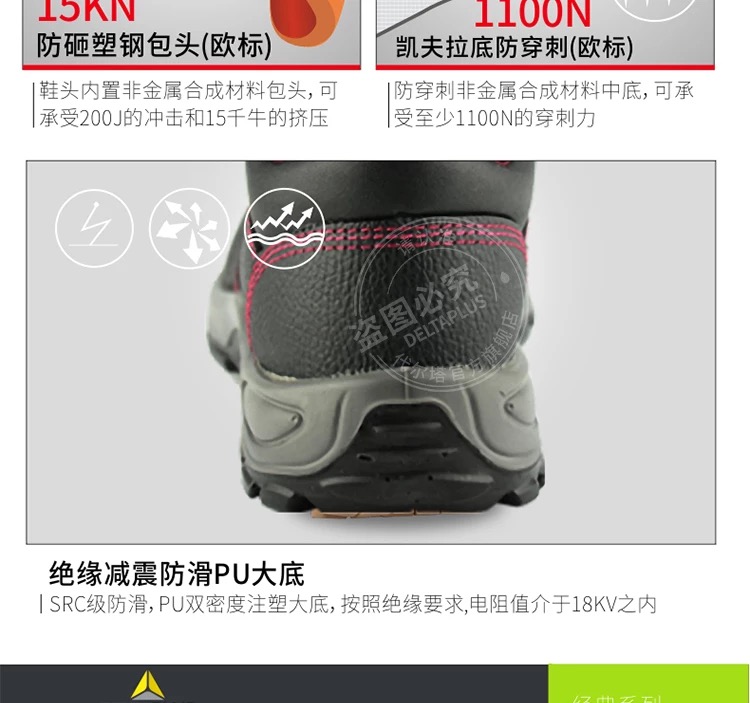 代尔塔 防砸防刺18KV绝缘安全鞋 301110 41码 1双