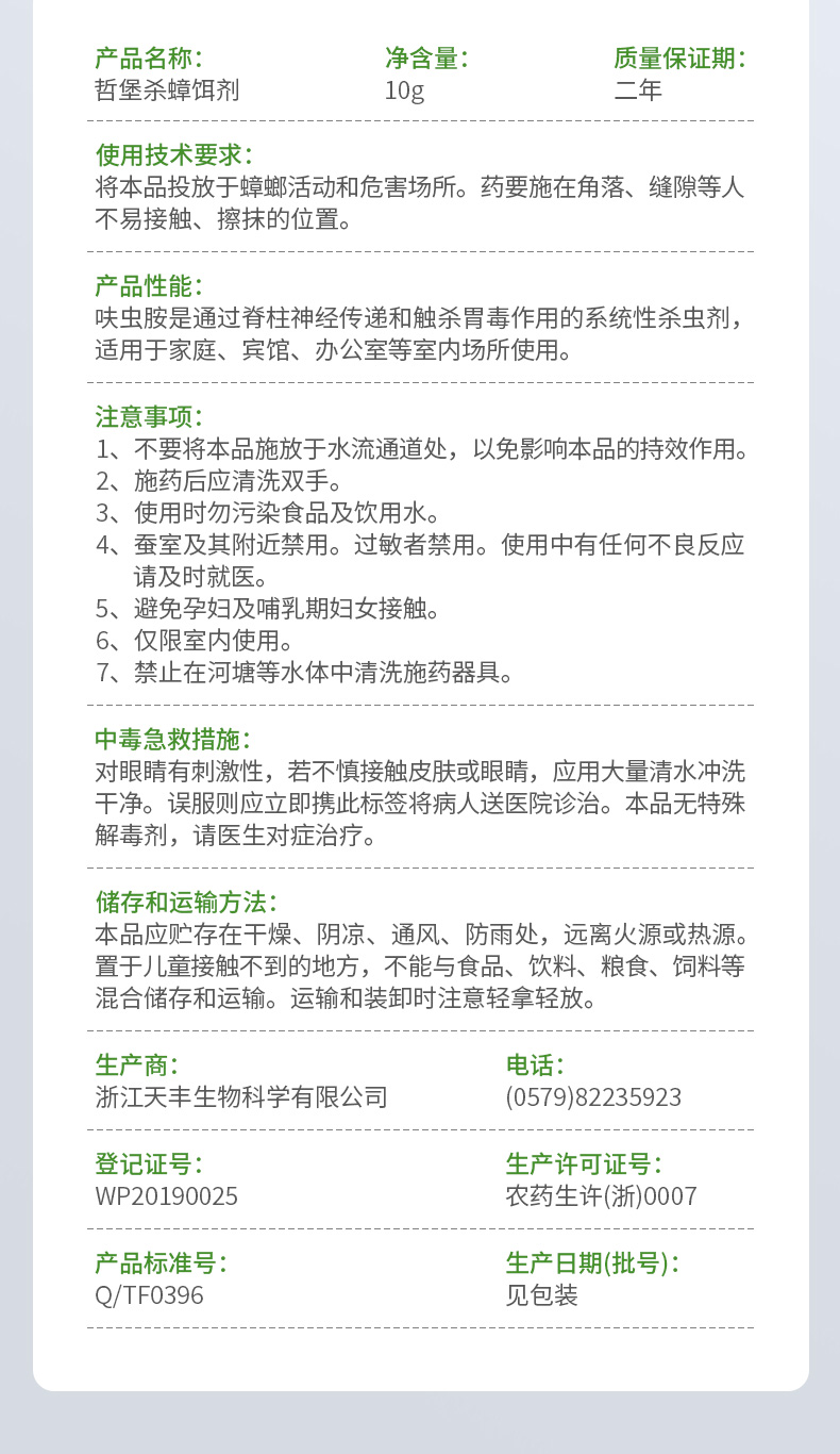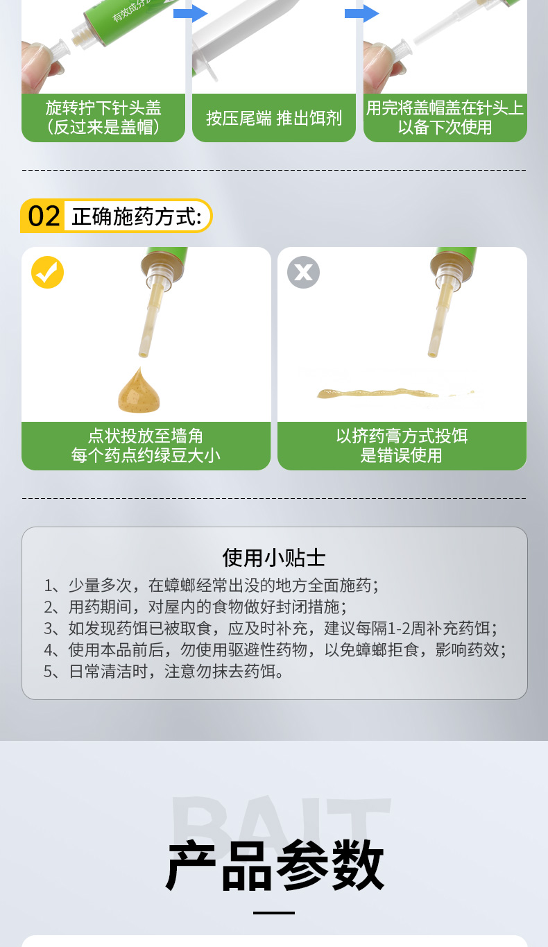 哲堡 杀蟑胶饵 含呋虫胺0.5% 10g 1支