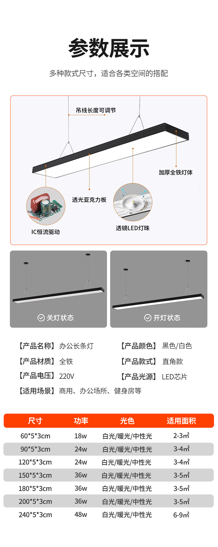 国产通用 LED长条灯 24W 白光 升级超亮款 90*5*3cm 1个