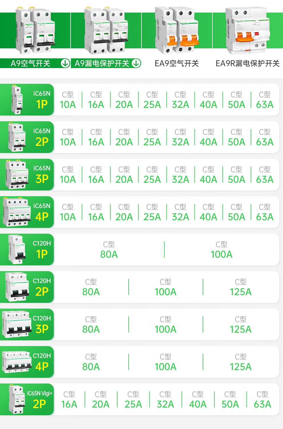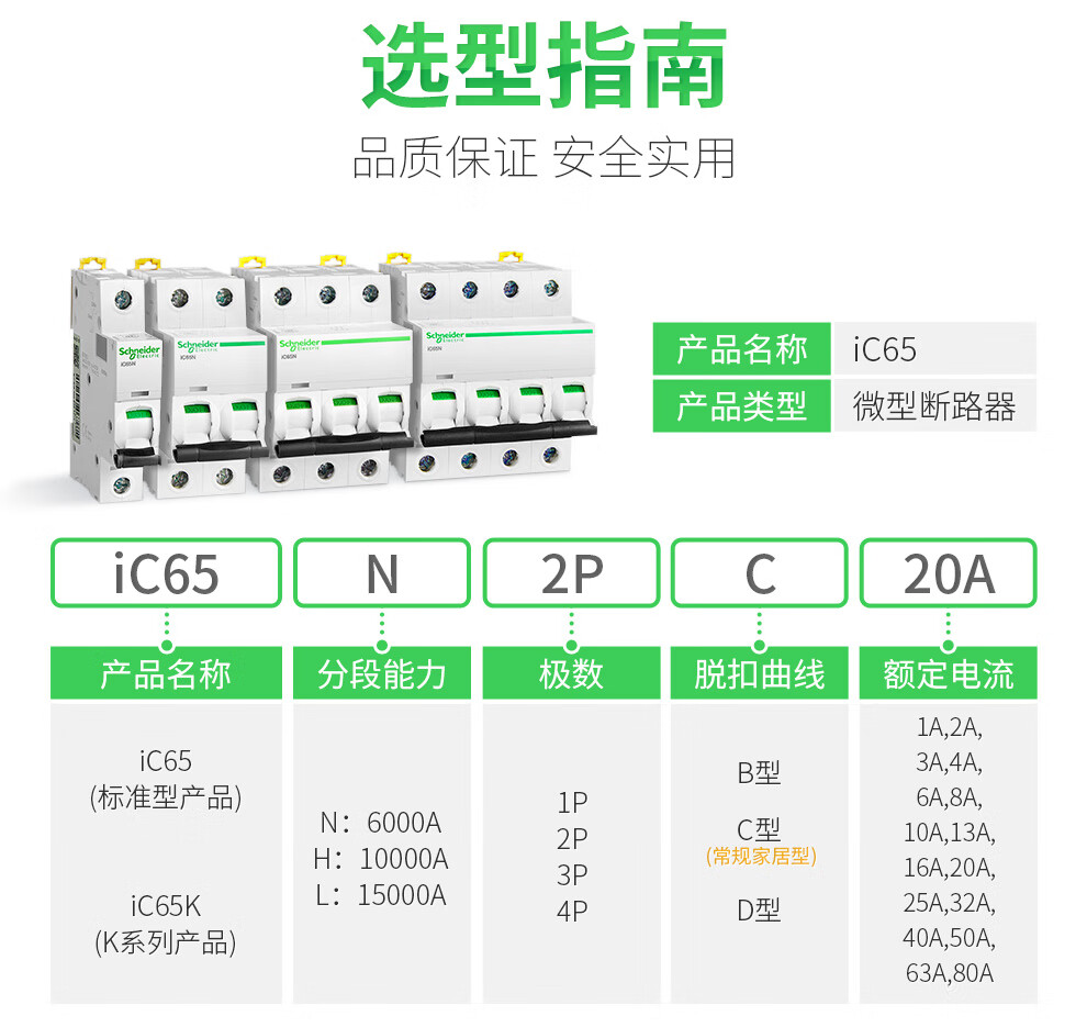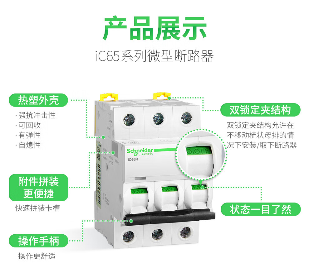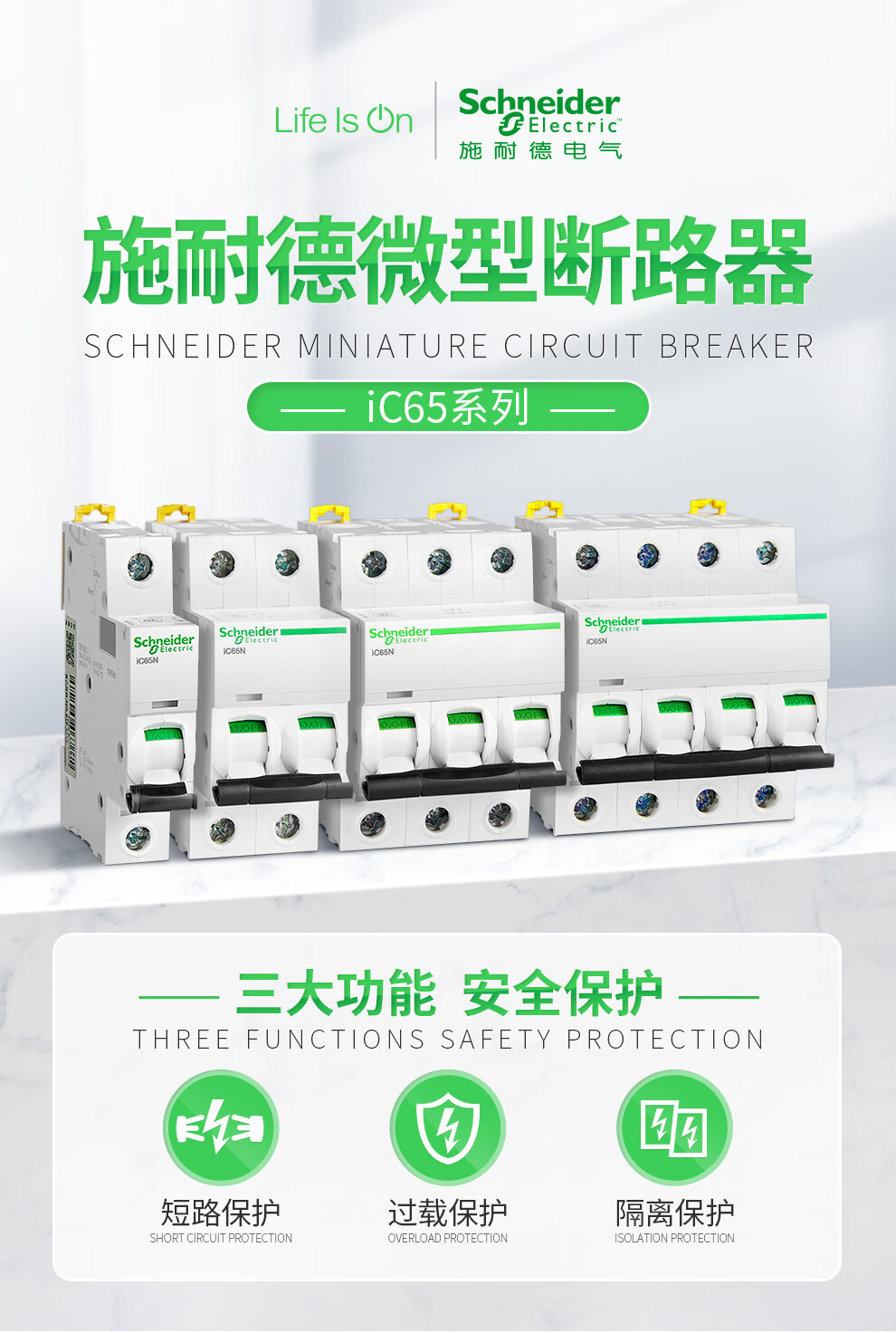施耐德电气 小型断路器 iC65N 2P D6A 1个