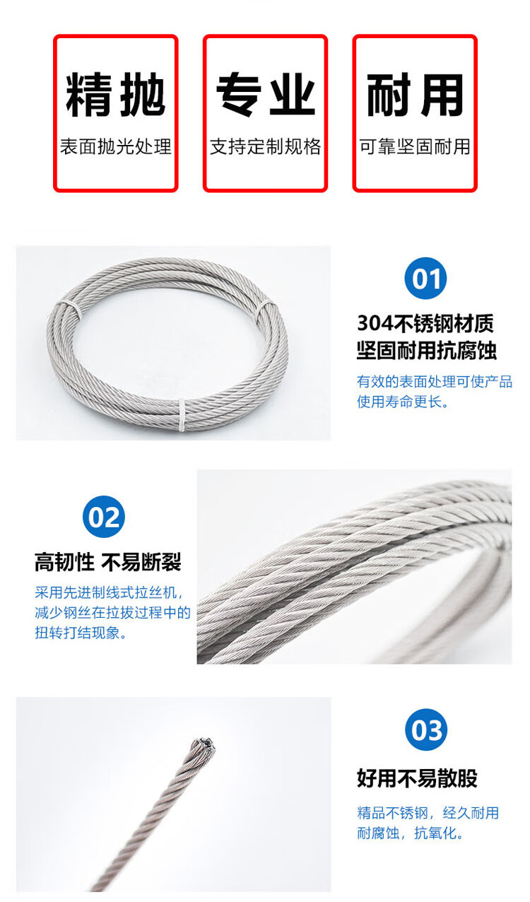 海斯迪克 升降起重牵引承载绳 HKsq-798 1mm 7×7结构 50米 1捆