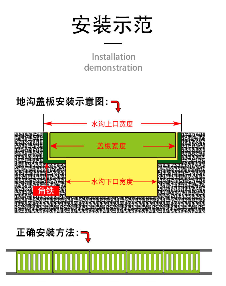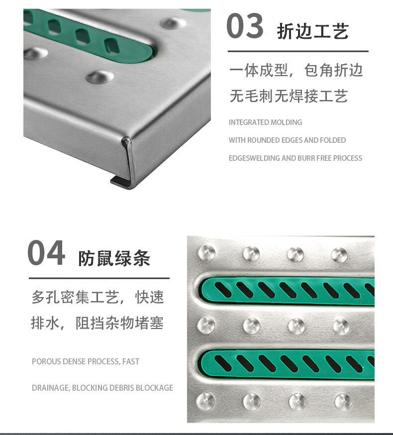 国产通用 水篦子沟盖板 201不锈钢 绿条款 50cm*12*2.5cm厚2mm 1个