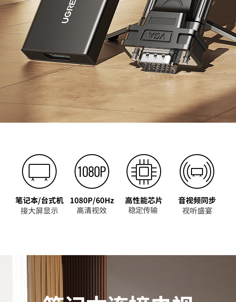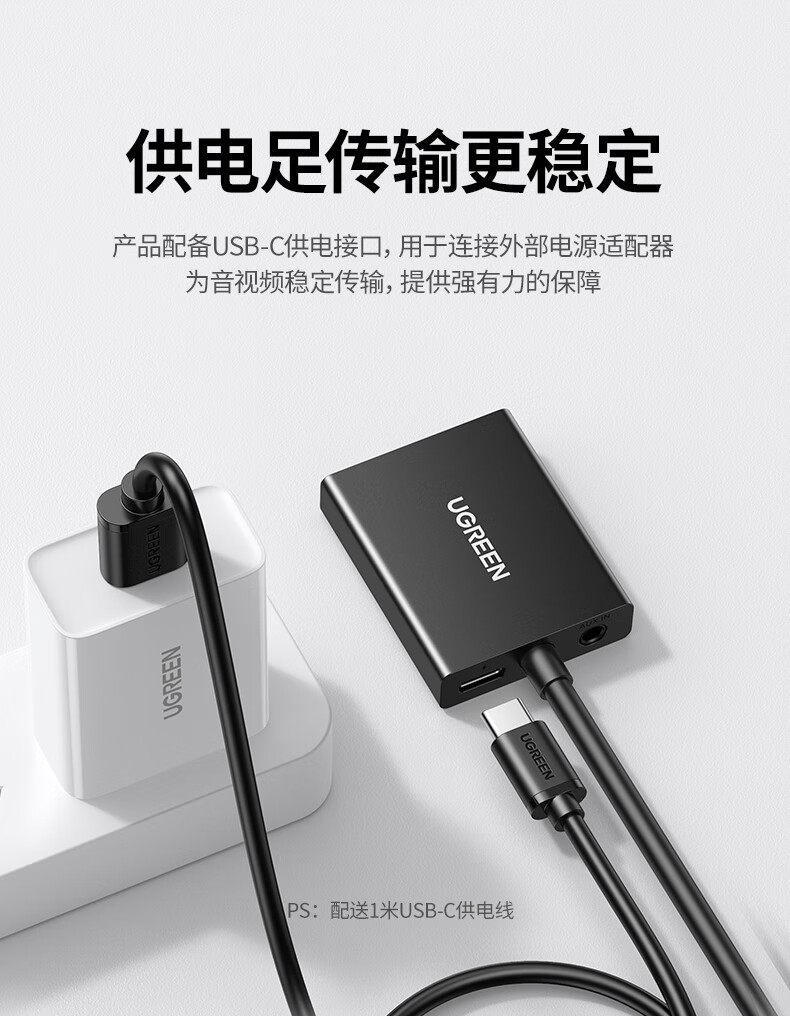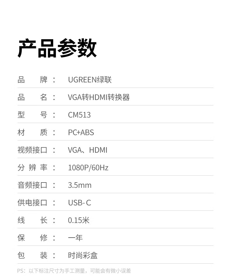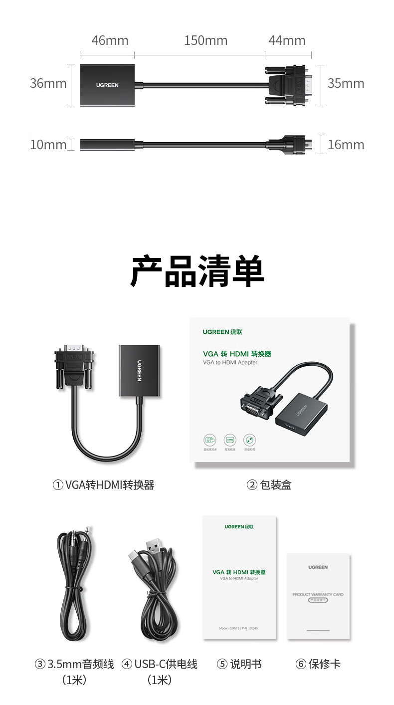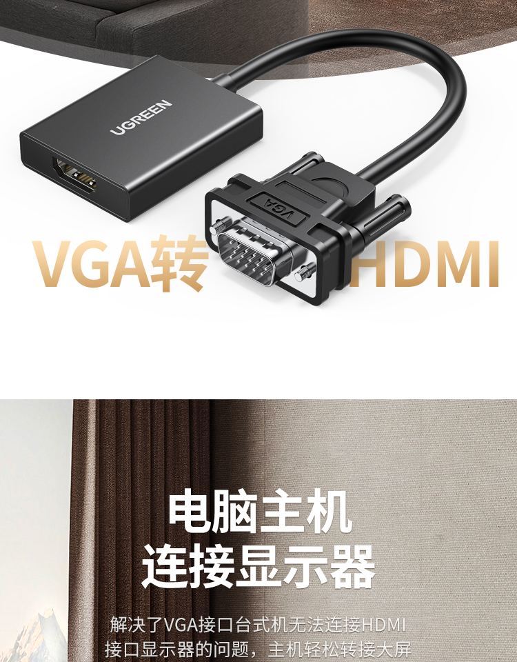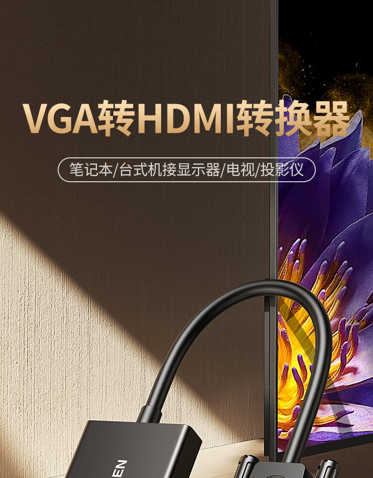 绿联 VGA转HDMI转换器带音频供电 CM513/50945 胶壳款 1个