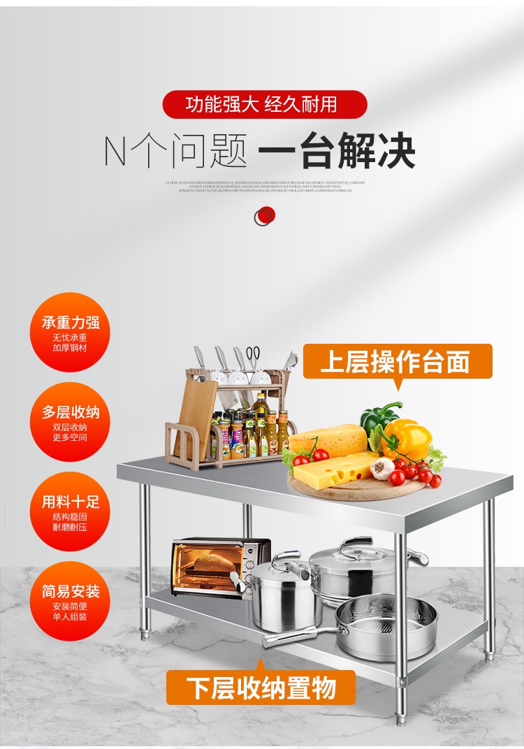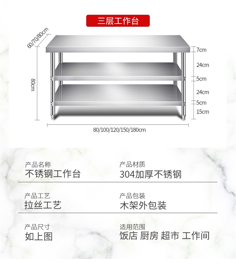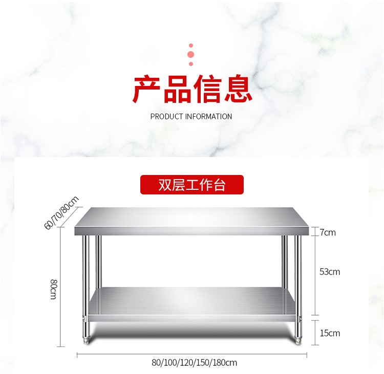 国产通用 304不锈钢工作台 双层 60×40×80cm 1张