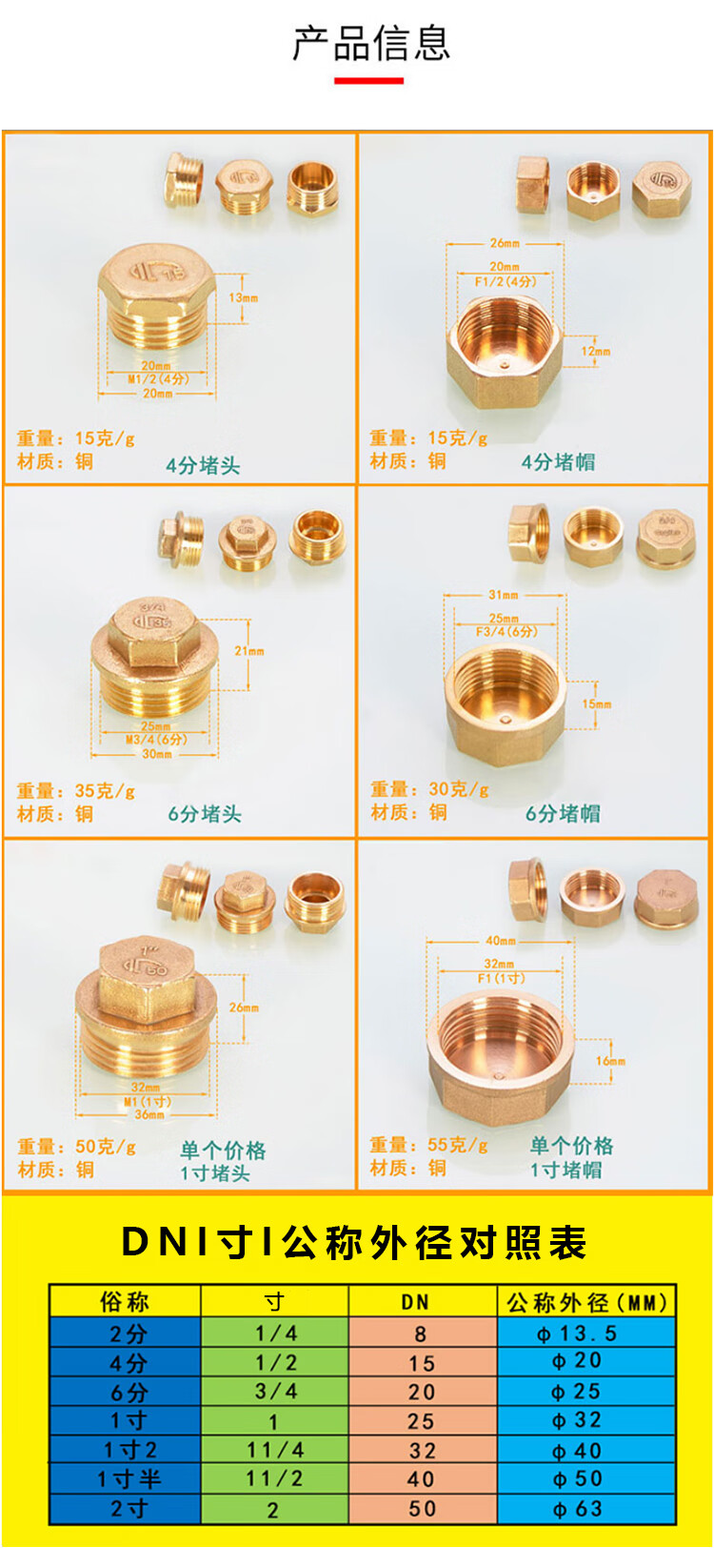 赫思迪格 外丝铜堵头 HSJZ-1140 4分堵头外丝 1个