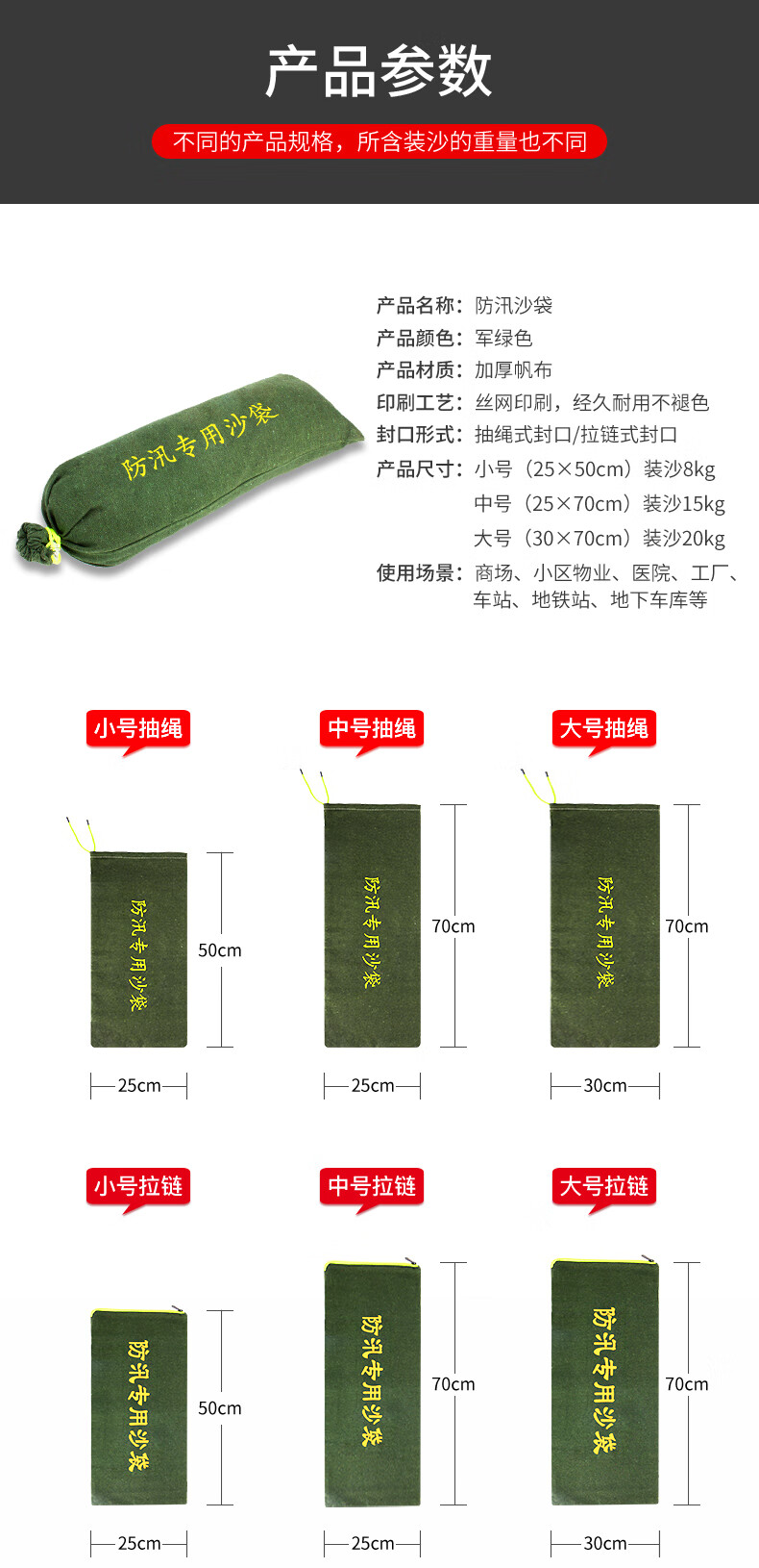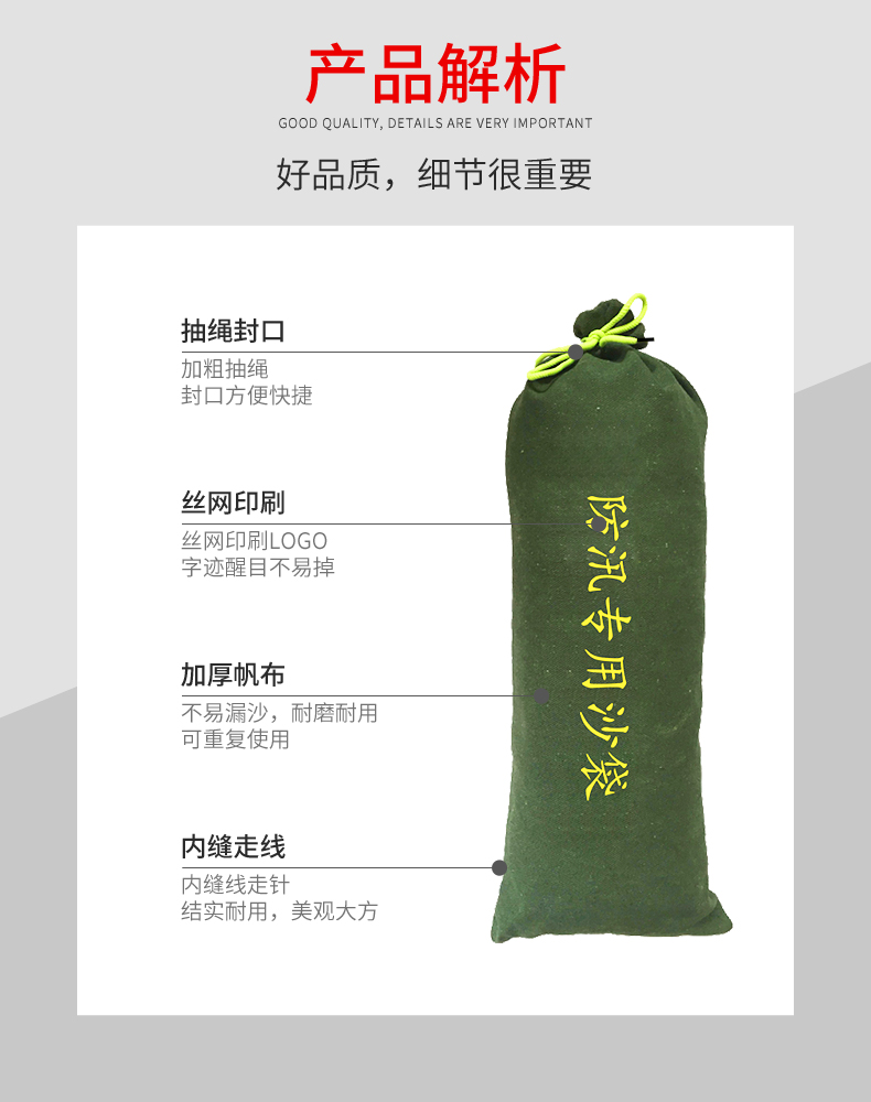 援邦 防汛沙袋 FXSD-PZ-700x300 700x300mm 不含沙 军绿色 膨胀款 1条