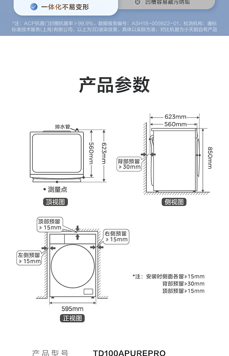 小天鹅 全自动滚筒洗衣机 TD100APUREPRO 10公斤 含基础安装 1台