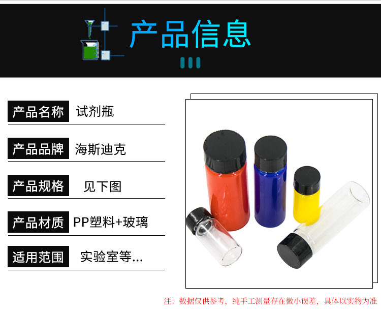海斯迪克 黑盖螺口瓶 KY62-1 PP塑料+玻璃 透明 2/3ml 1个