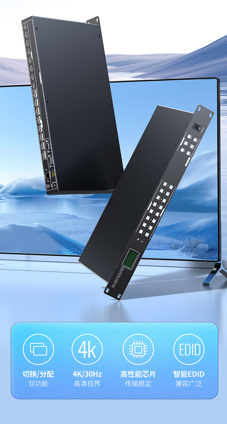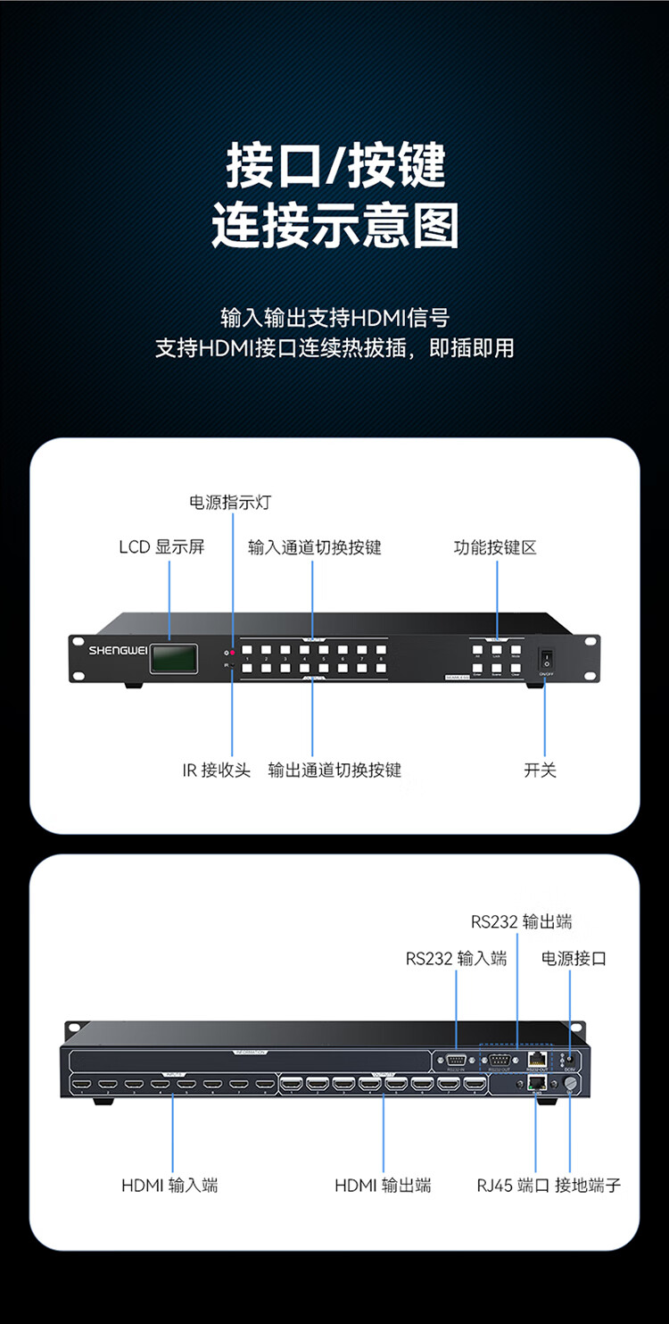 胜为 HDMI无缝矩阵切换器 DHJ0808K 黑色铁壳 1U机架式 8进8出 1个