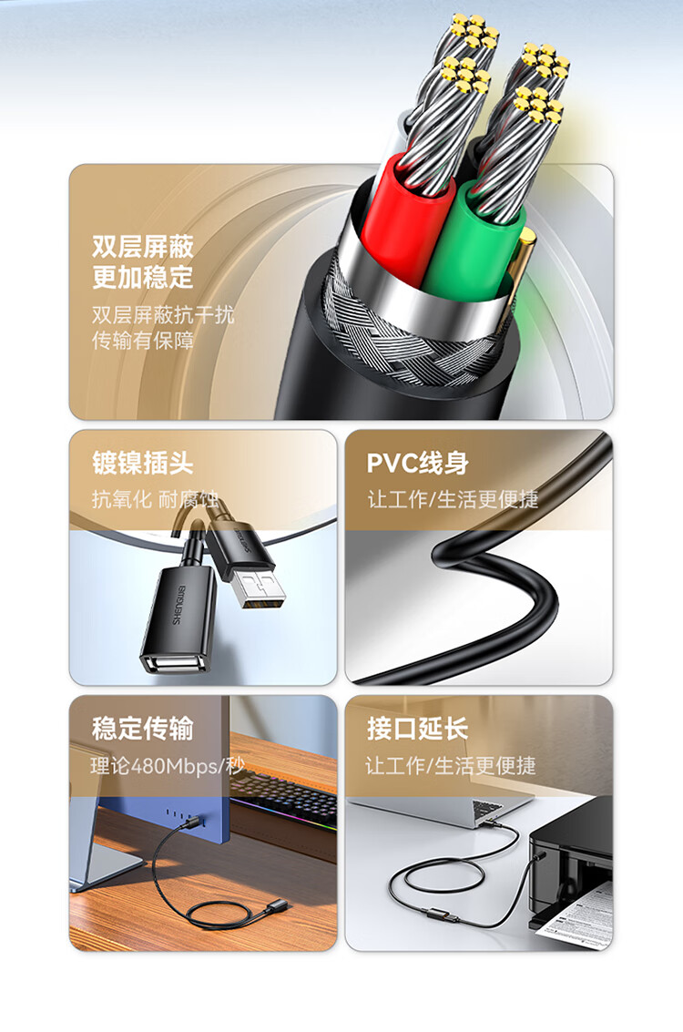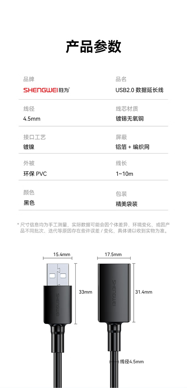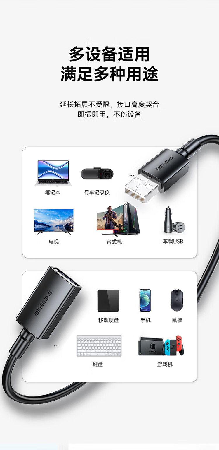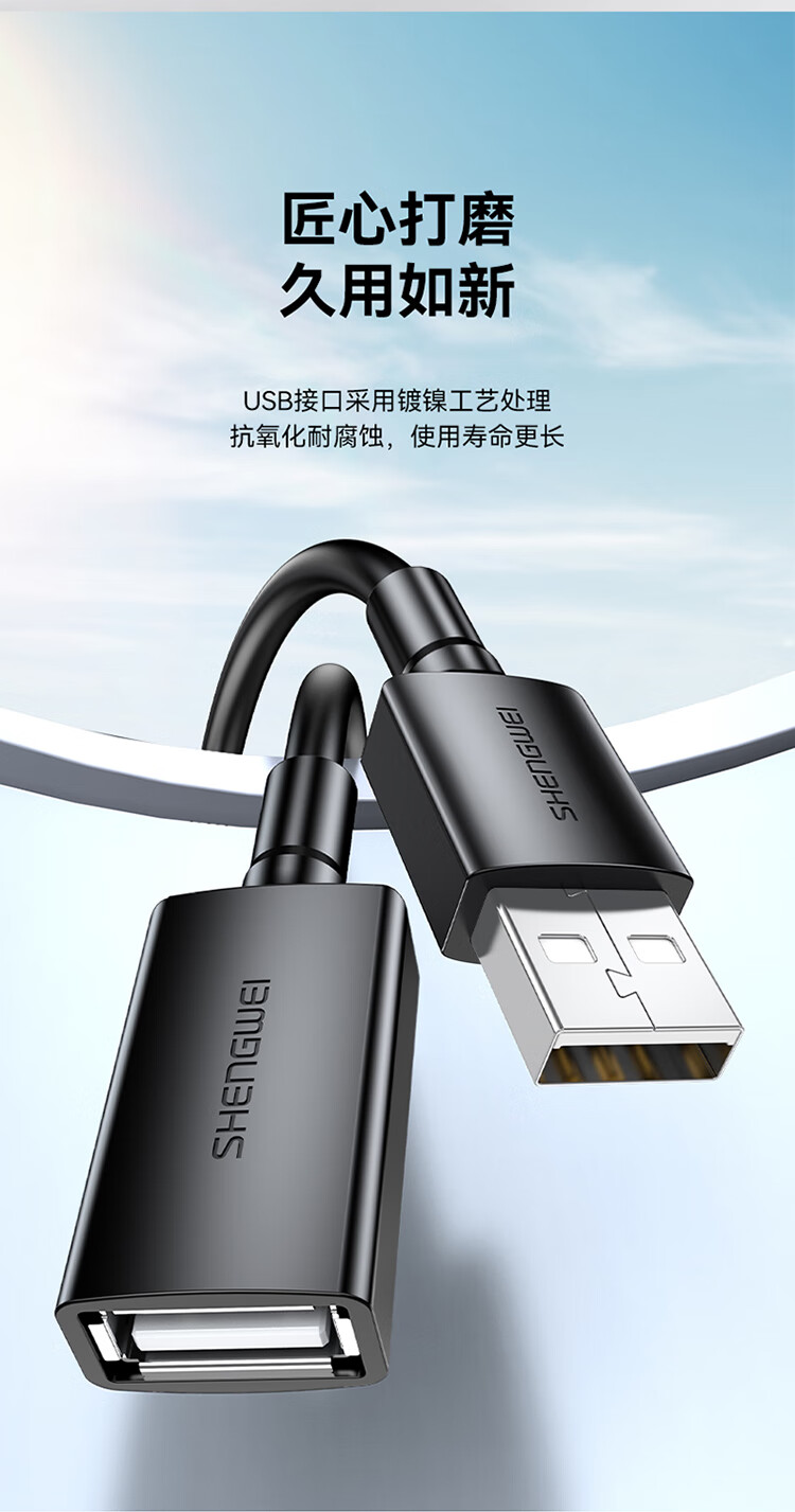 胜为 USB2.0延长线 AUF1010G 黑色 1m 1根