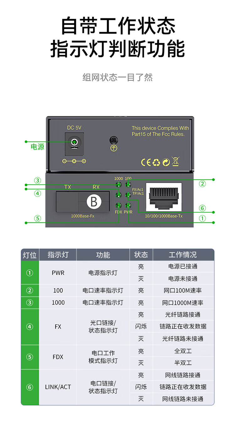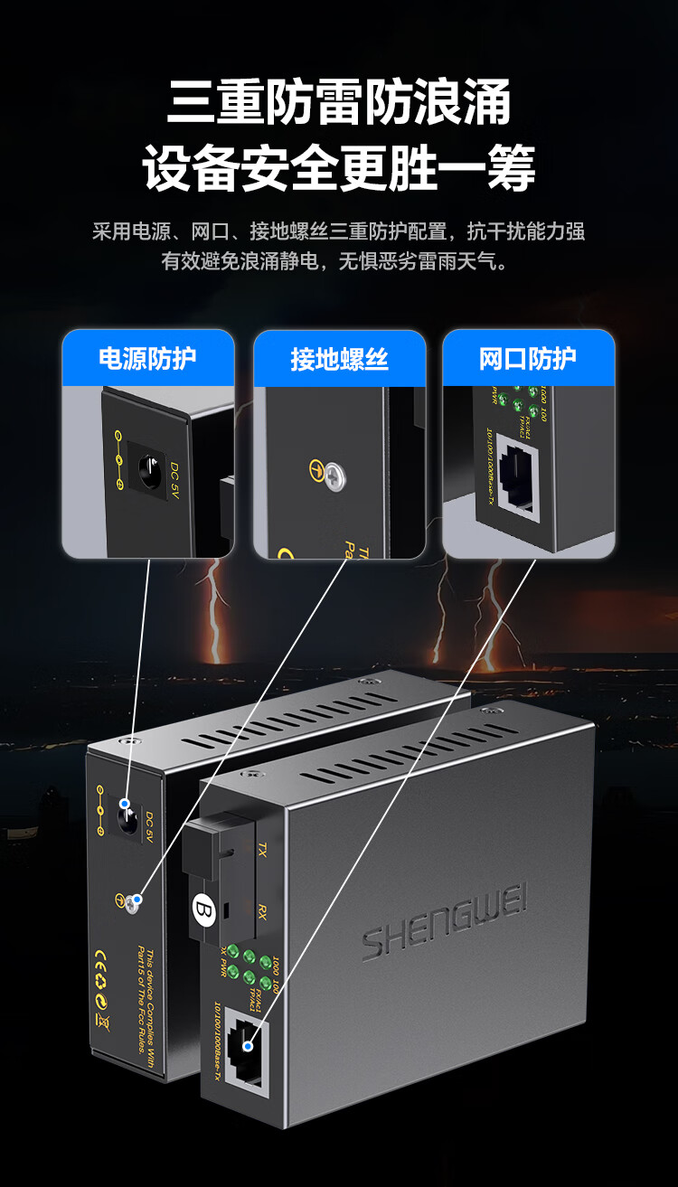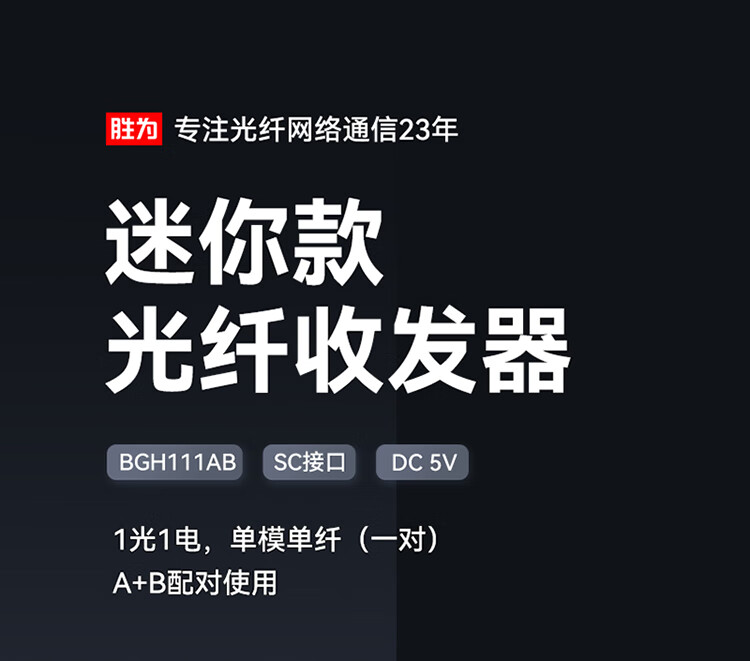 胜为 光纤收发器 BGH111AB 千兆一光一电 单纤 ≤20KM 1个