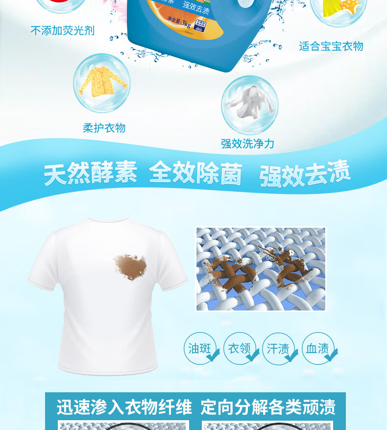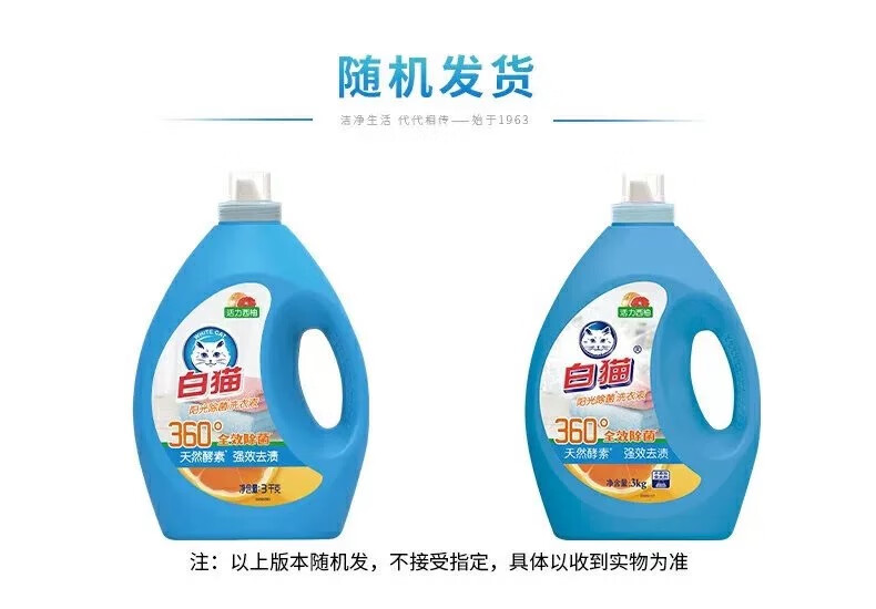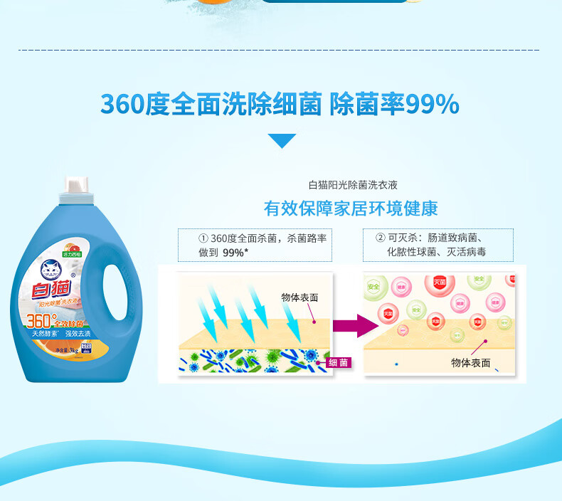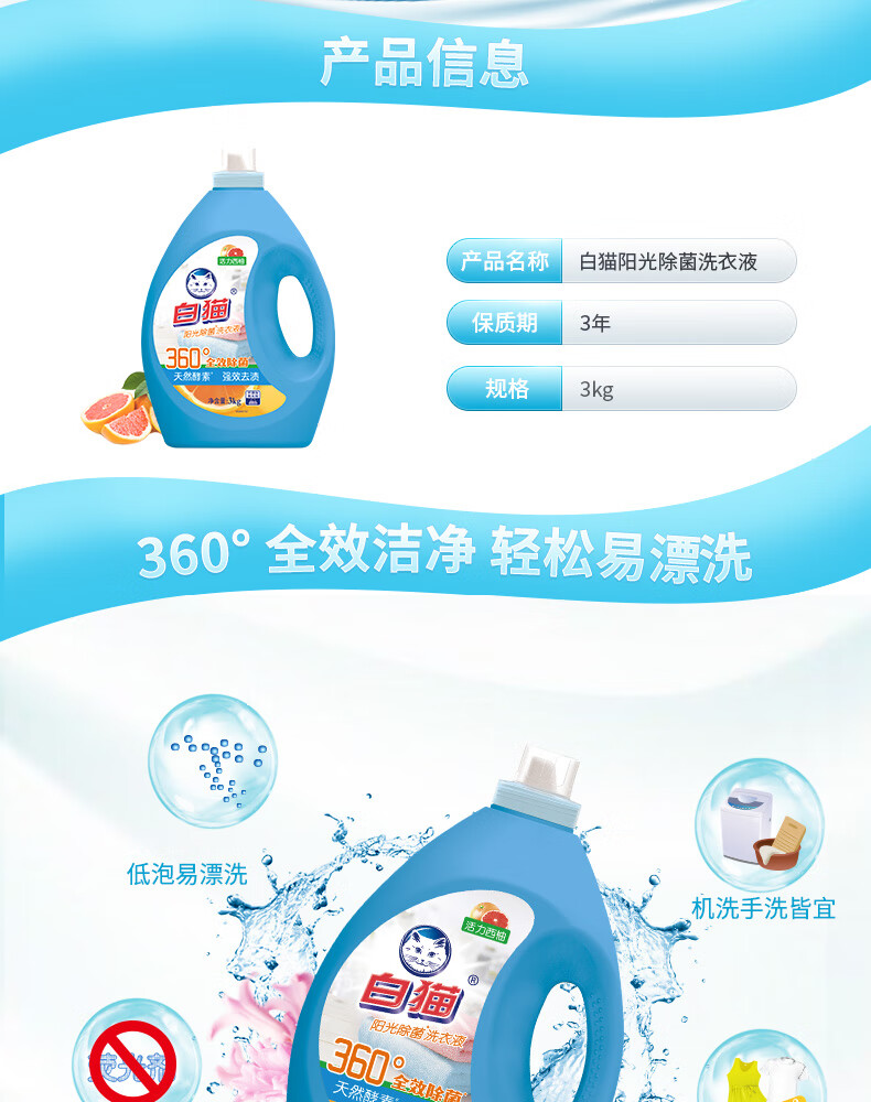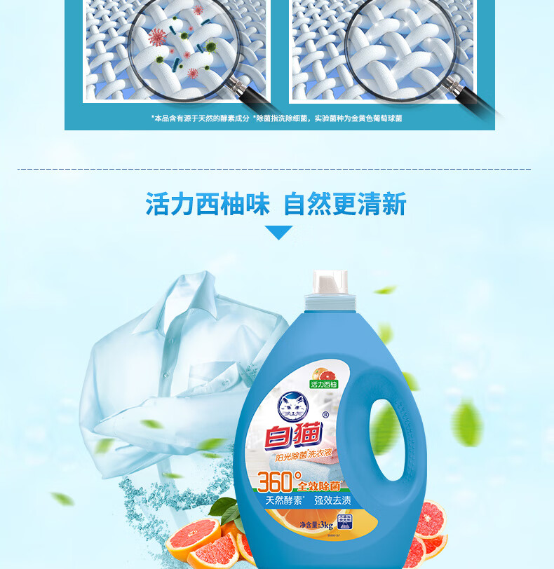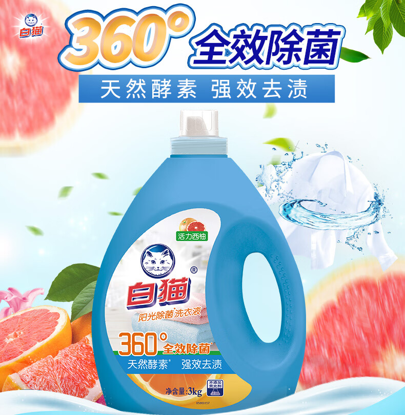 白猫 阳光除菌洗衣液 活力西柚 3kg 1瓶