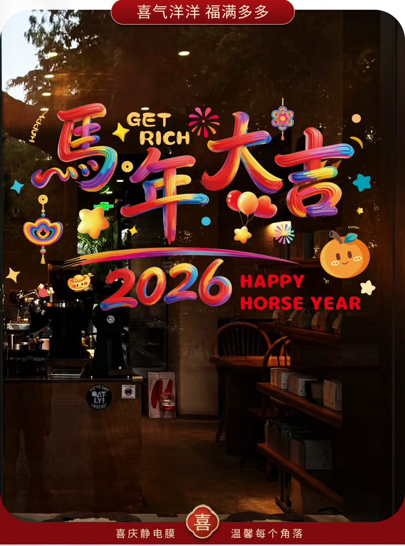 • 商品名称:海斯迪克 马年窗花贴纸
