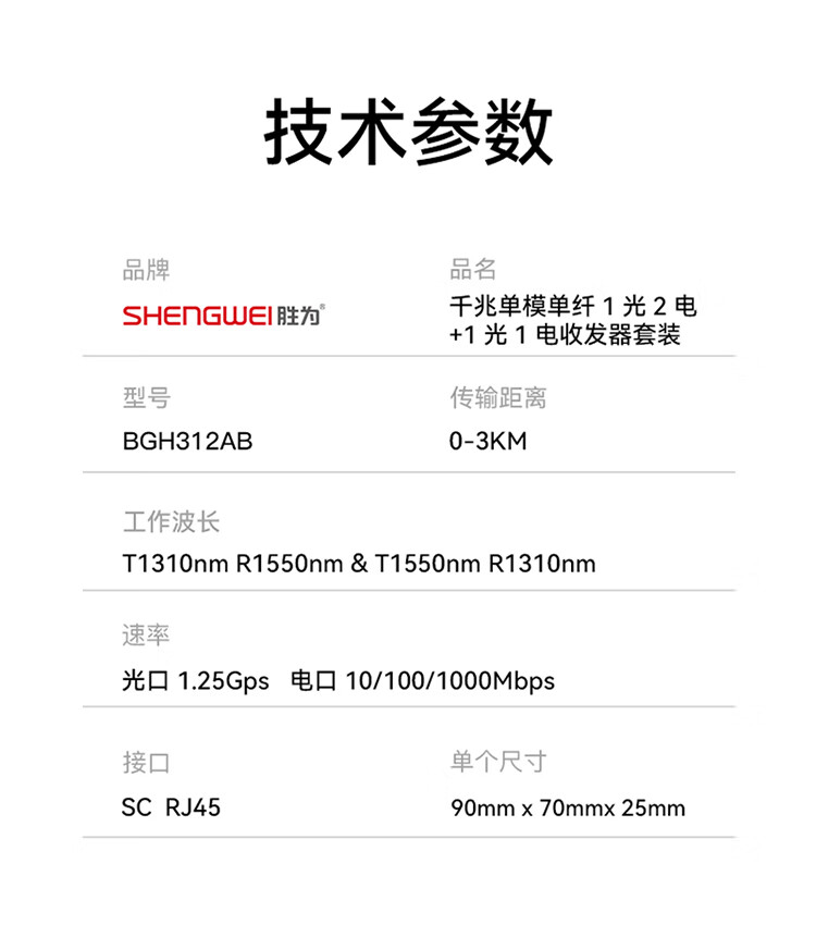 • 商品名称:胜为 千兆迷你款一光二电光纤收发器