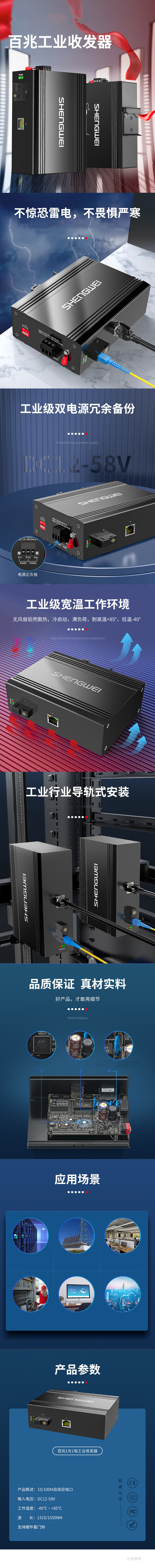 胜为 千兆工业收发器 BGHJ111G 一光一电 单模单纤 SC接口 ≤20KM 1盒