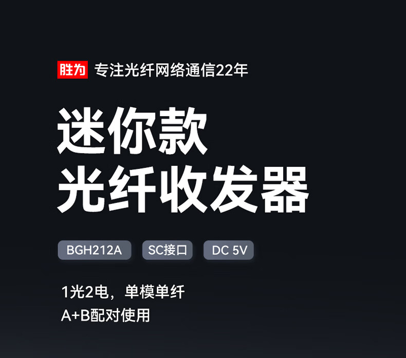 胜为 商业级收发器 BGH104TX 千兆 A端迷你一光四电 B端迷你一光一电 单模单纤 ≤3KM 1对