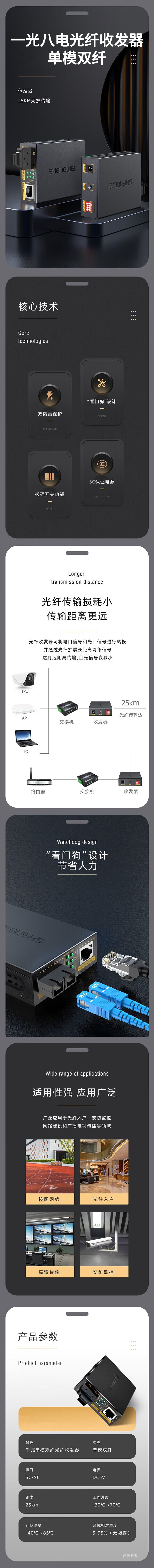 胜为 一光八电光纤收发器 BGHJ108G 千兆 一光八电 单模双纤 ≤20KM 1台