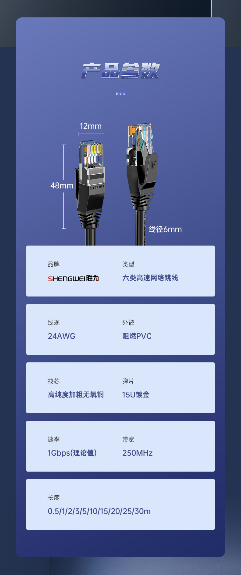 胜为 CAT6类千兆网线 LC-6300G 黑色 30m 1条