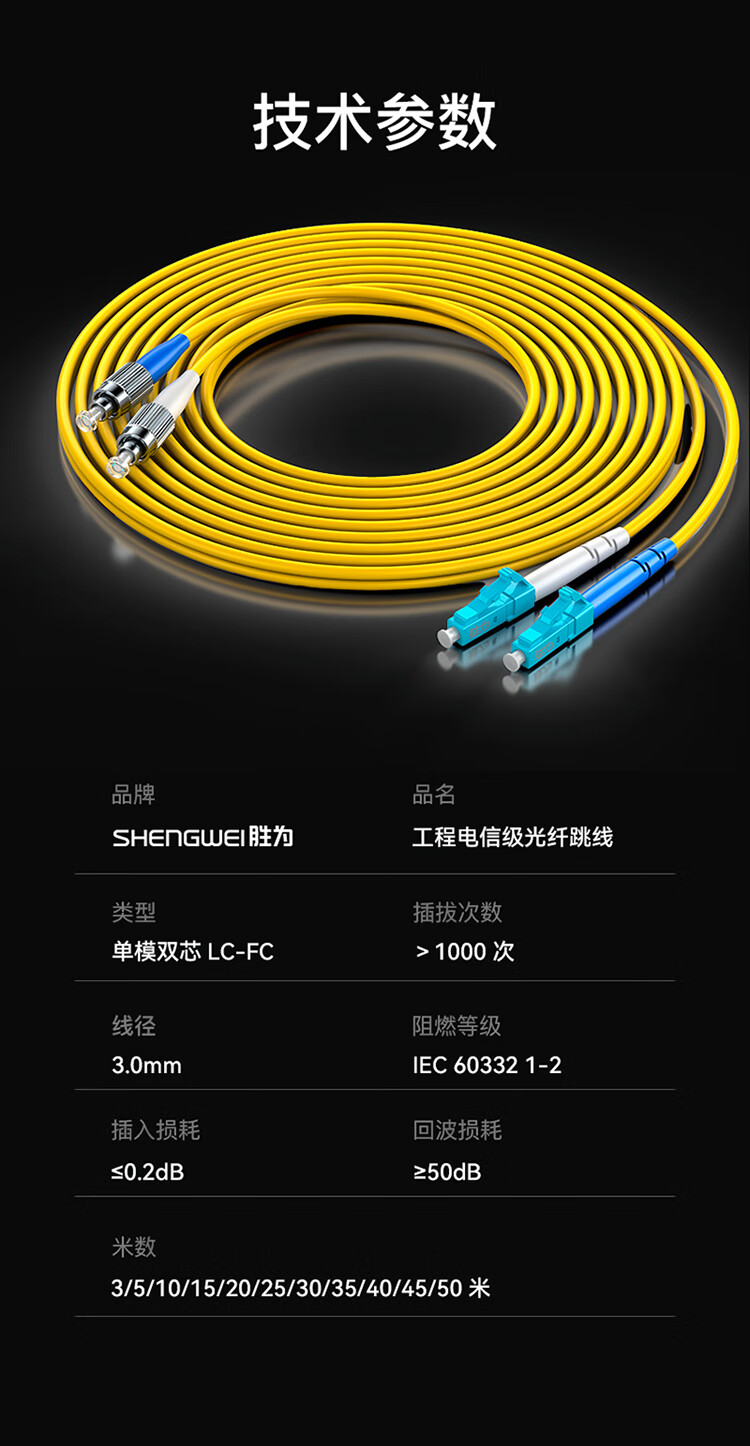 胜为 电信级LC-FC单模双芯 FSC-710 低烟无卤 黄色 15m 1条