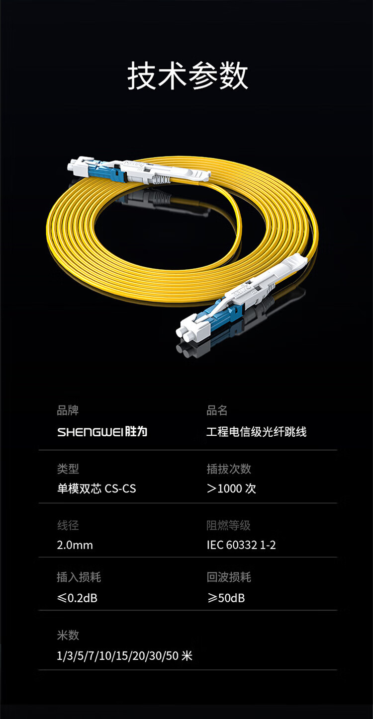 胜为 单模双工CS/UPC-CS-UPC 3.0mm SW-CSU-30M 低烟无卤 30m 1条