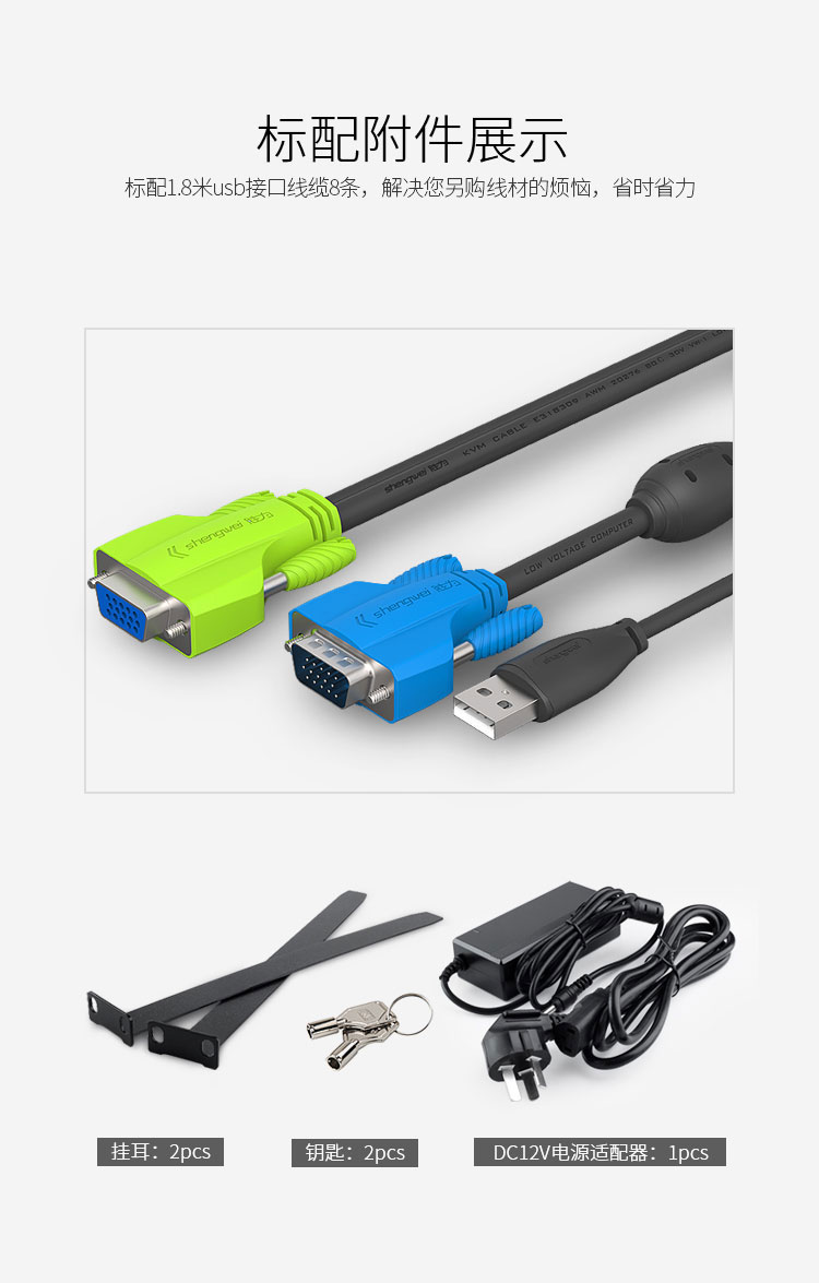 胜为 19寸液晶屏KVM切换器 KS-2908LCD 黑色铁壳 8进1出 1个