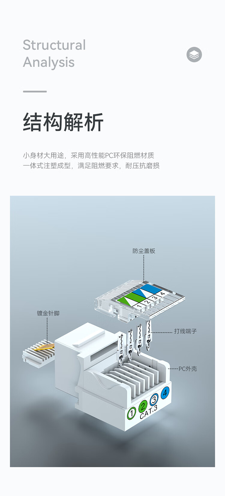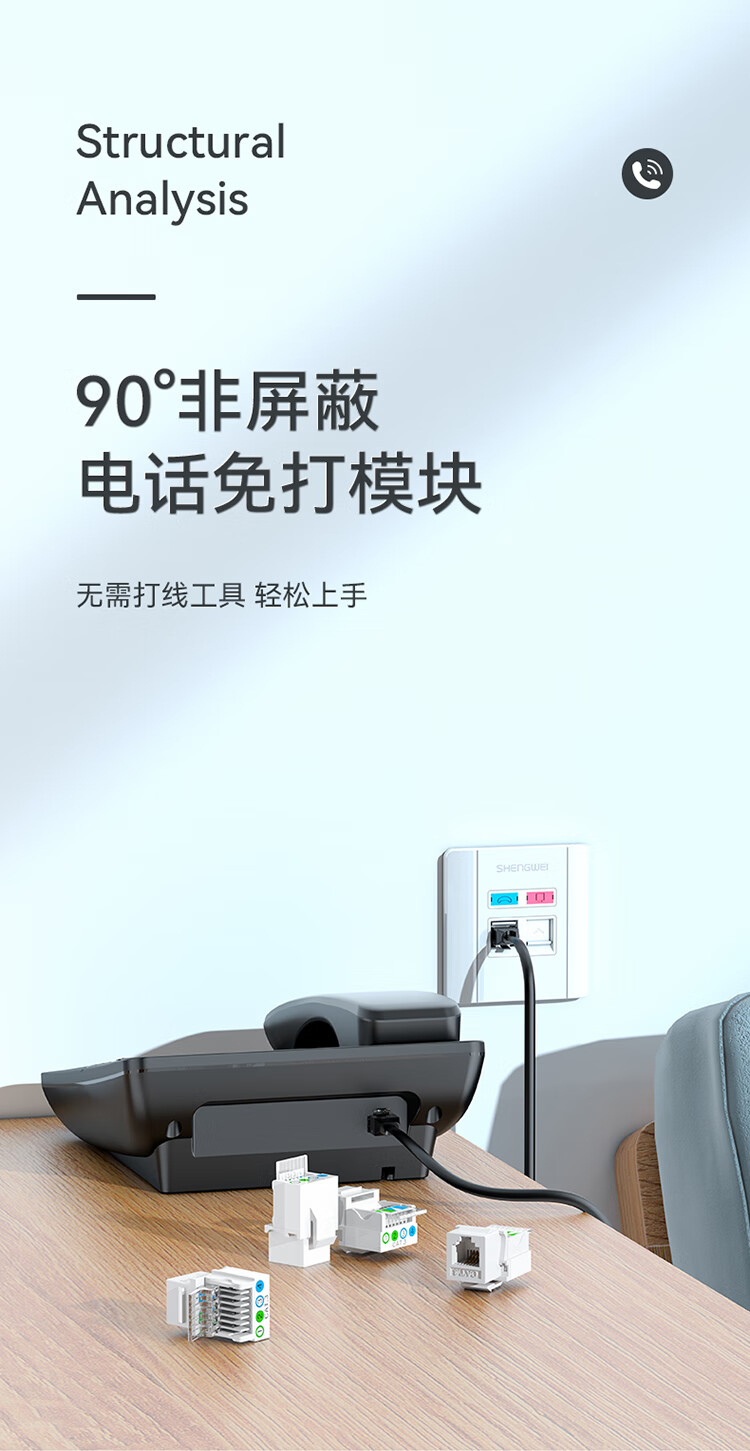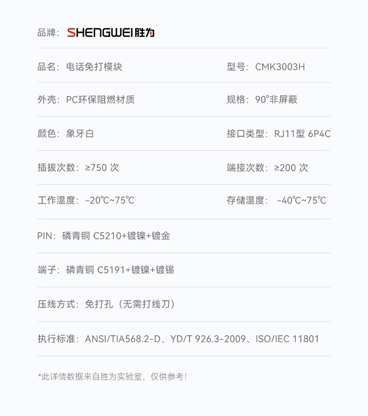 胜为 RJ11型 6P4C免打电话模块非屏蔽 CMK3003H 白色 1个
