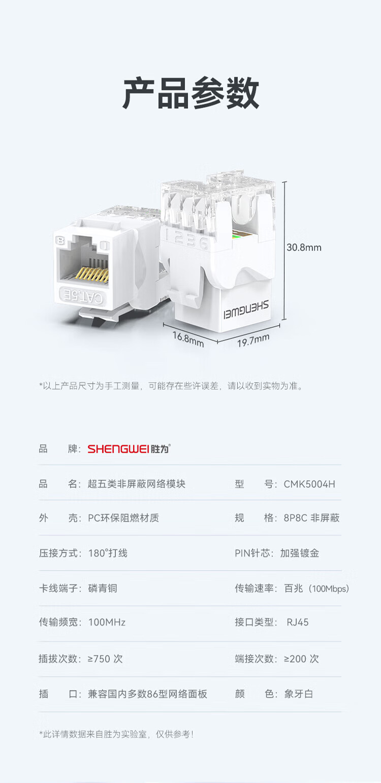 胜为 RJ11型 6P4C 电话打线模块 SIM-301 白色 1个