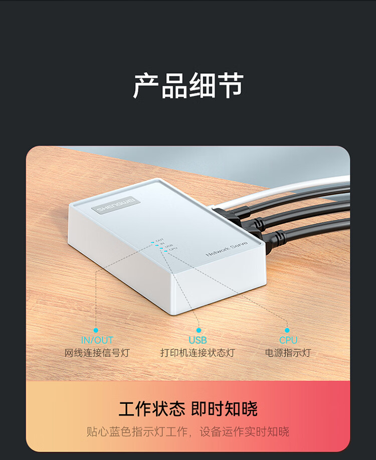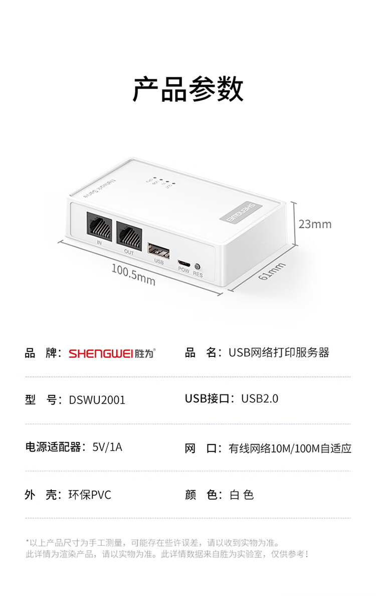 胜为 USB网络打印服务器 DSWU2001 双网口 1个