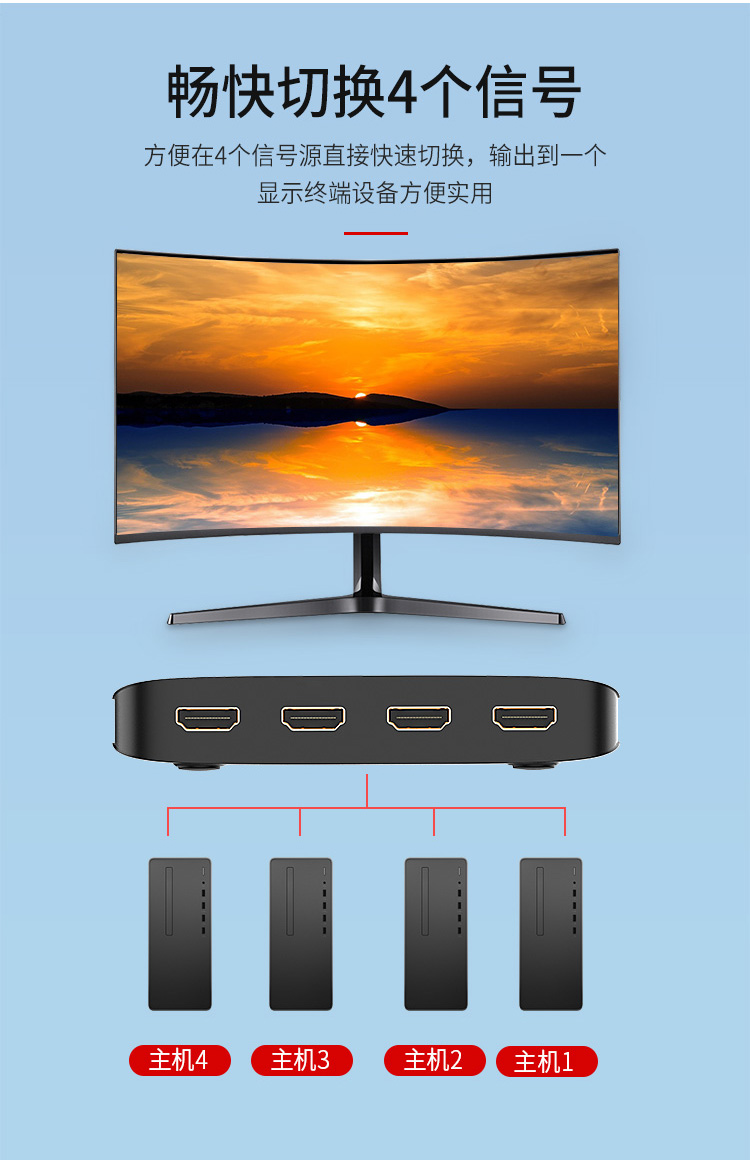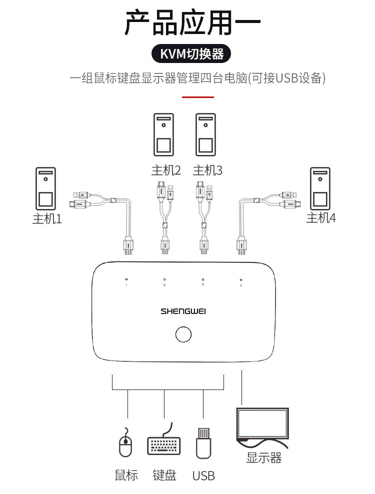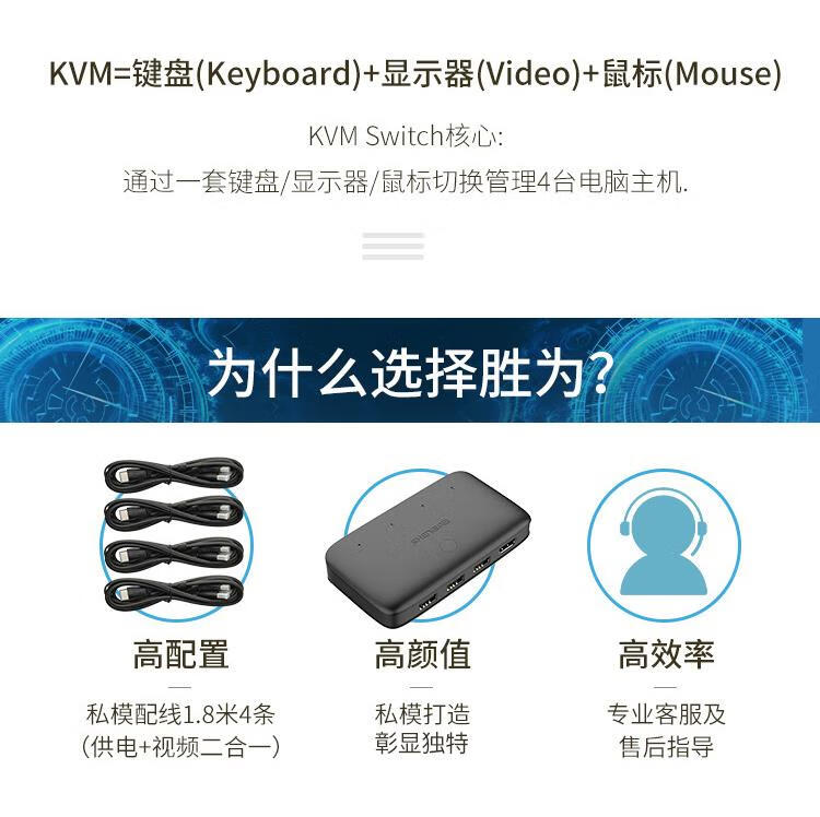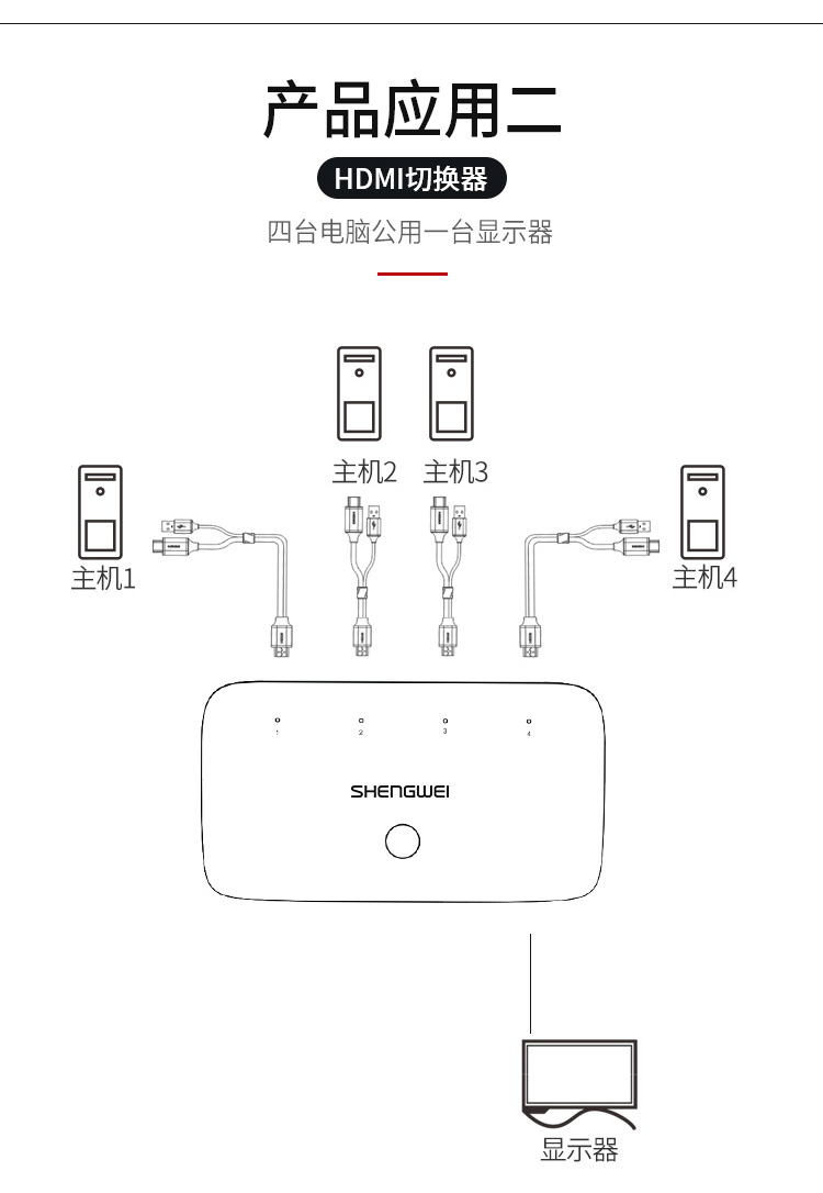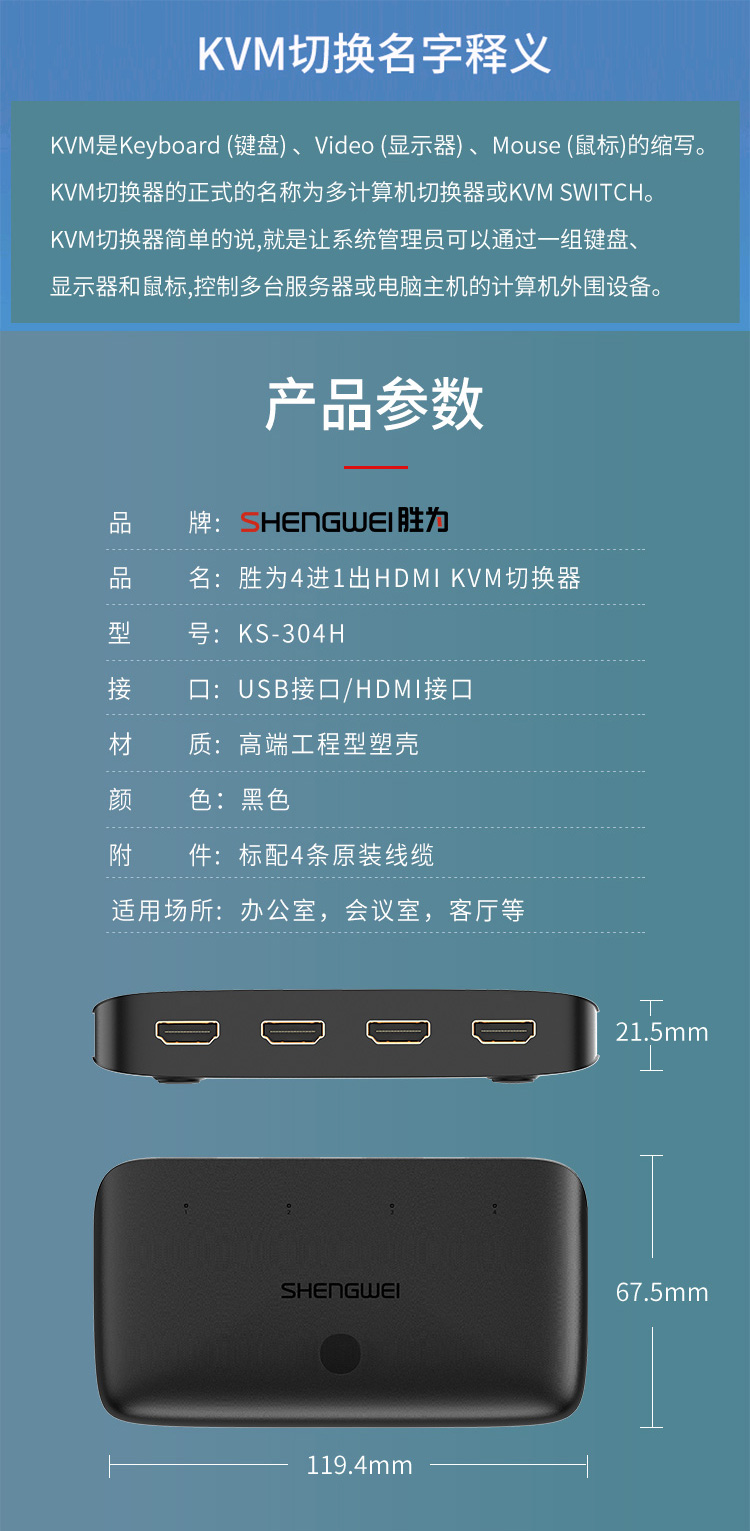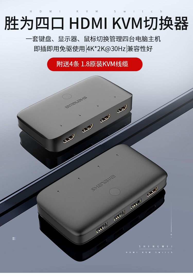 胜为 HDMI KVM切换器 KS-304H ABS黑色外壳 4进1出 1个