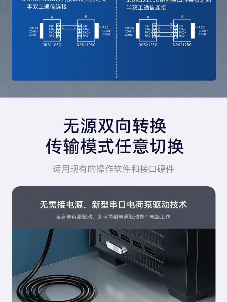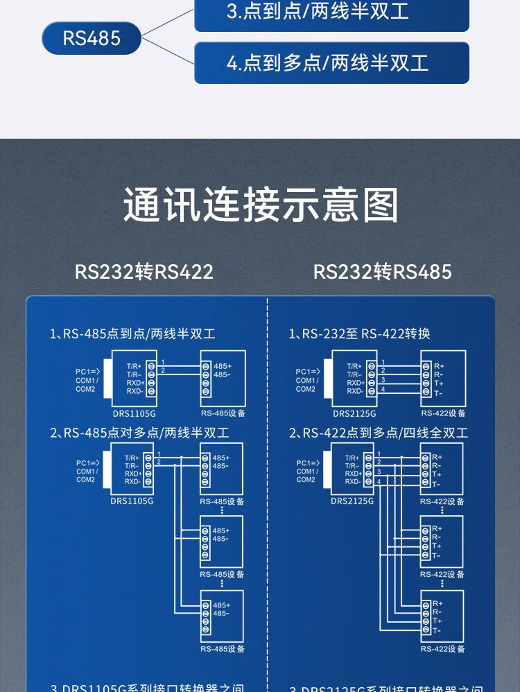 胜为 无源转换器 DRS2125G RS232转RS485/RS422 双向转换 1个