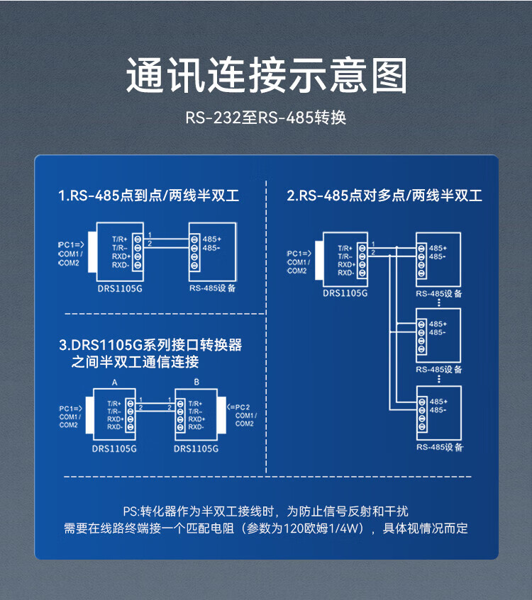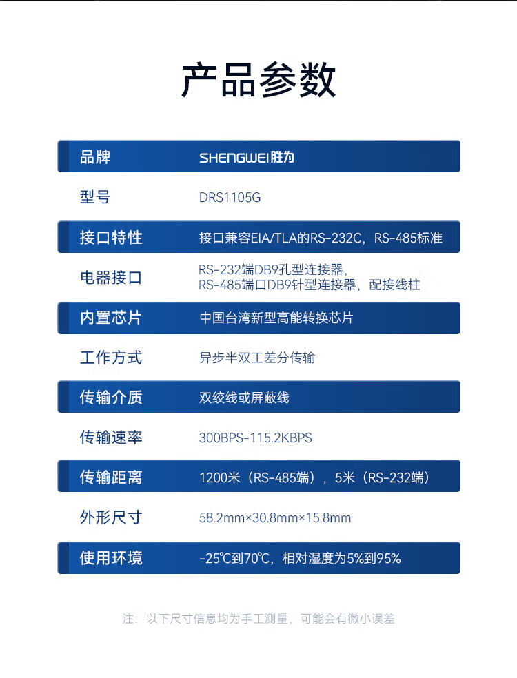 胜为 无源转换器 DRS1105G RS232转RS485 单向转换 1个