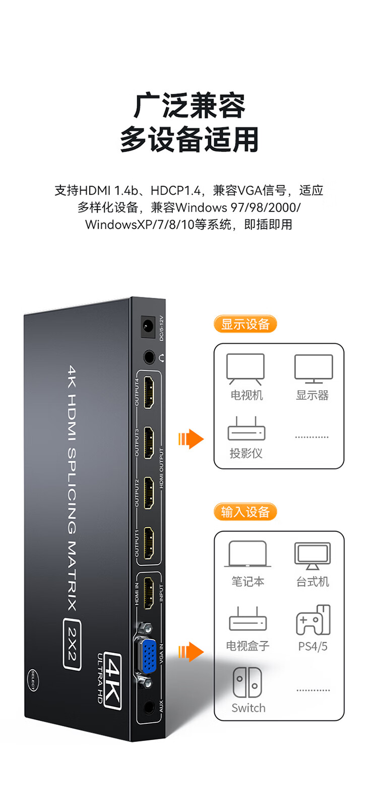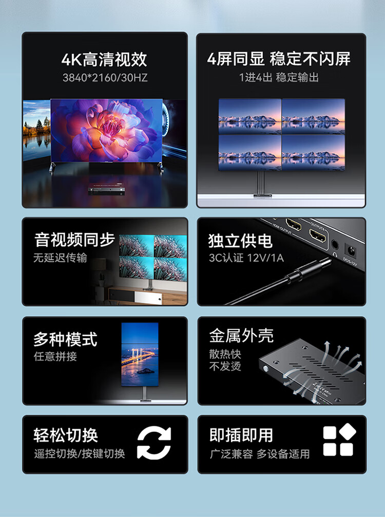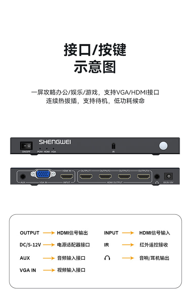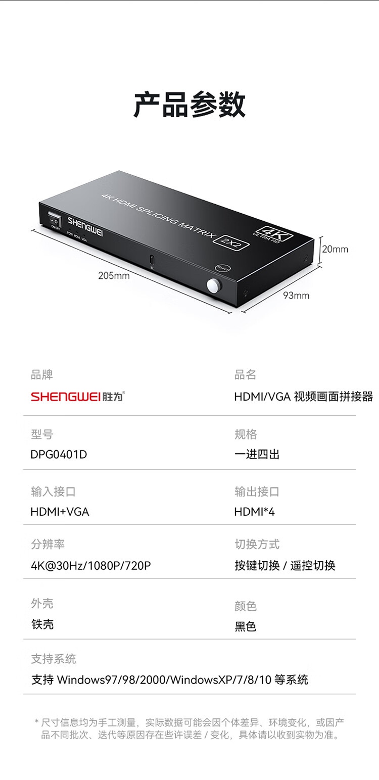 胜为 HDMI/VGA视频画面拼接器 DPG0401D 1进4出 1个