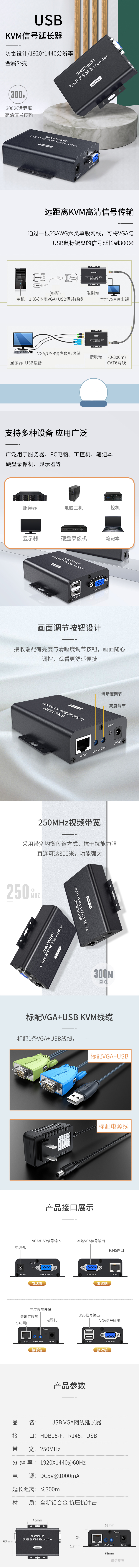 胜为 VGA+USB KVM延长器 KEC-1300AB 300m 1对