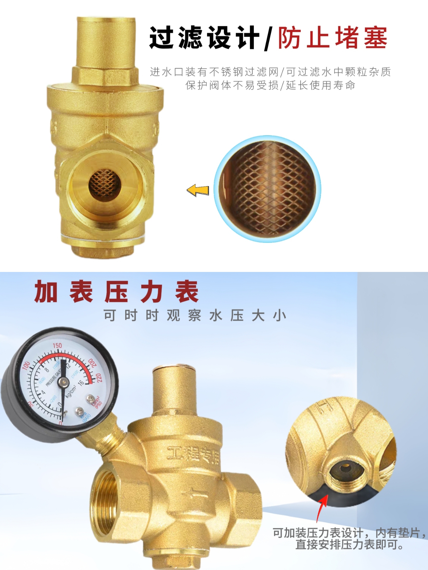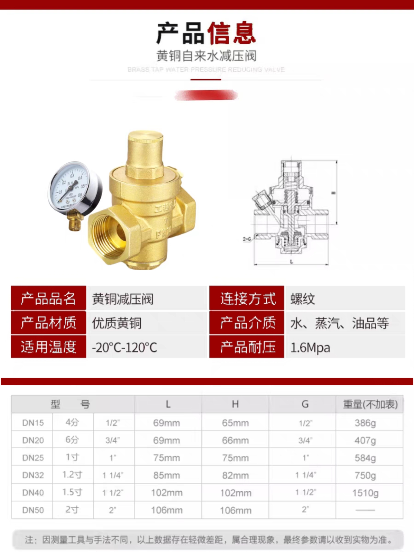 国产通用 黄铜减压阀 Y13X-16T 双内丝 DN32(带压力表) 1个