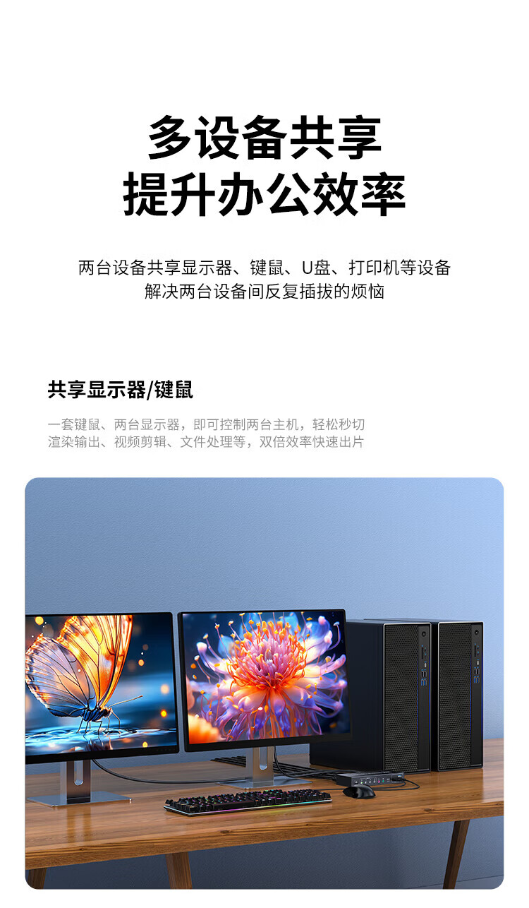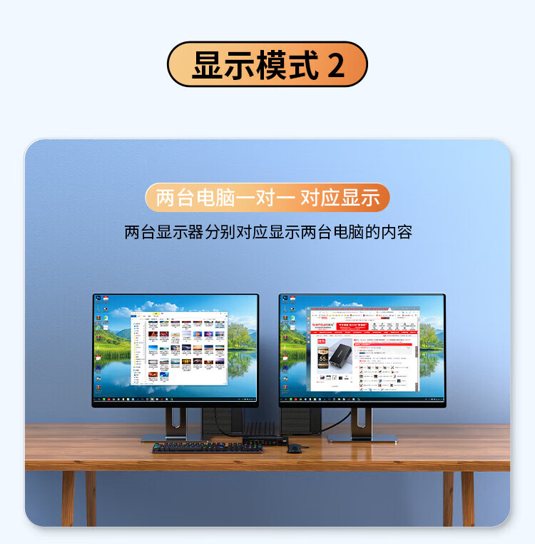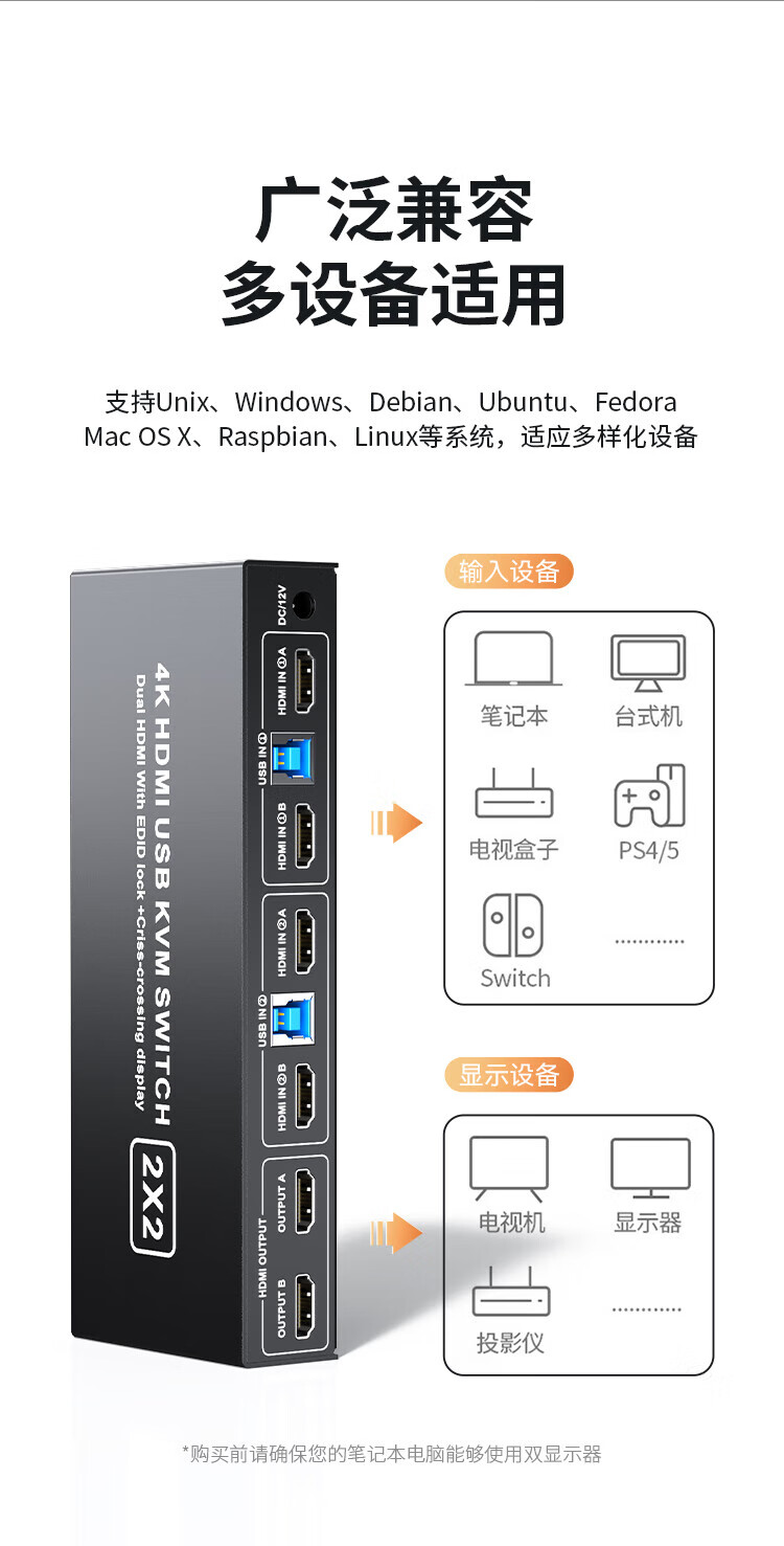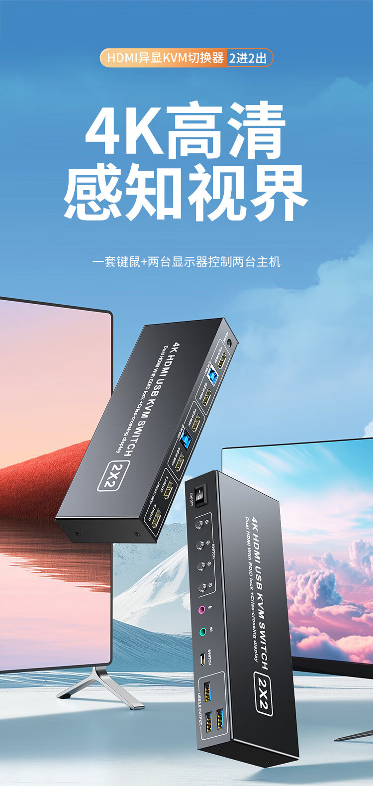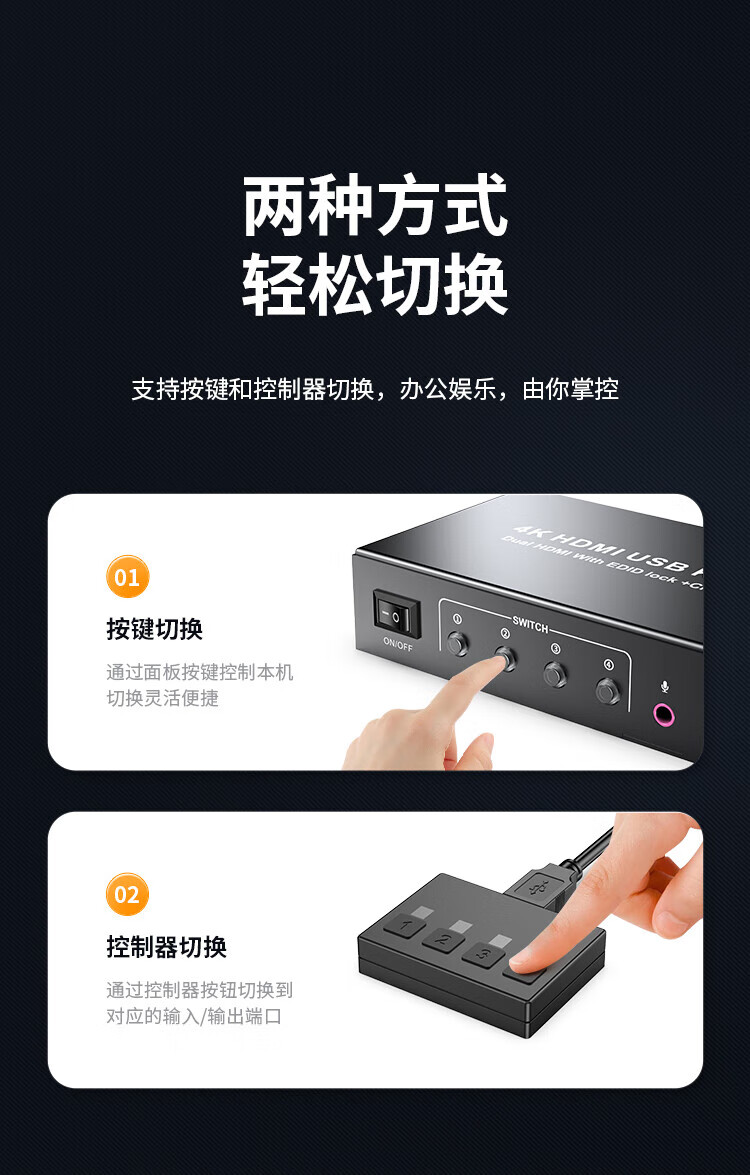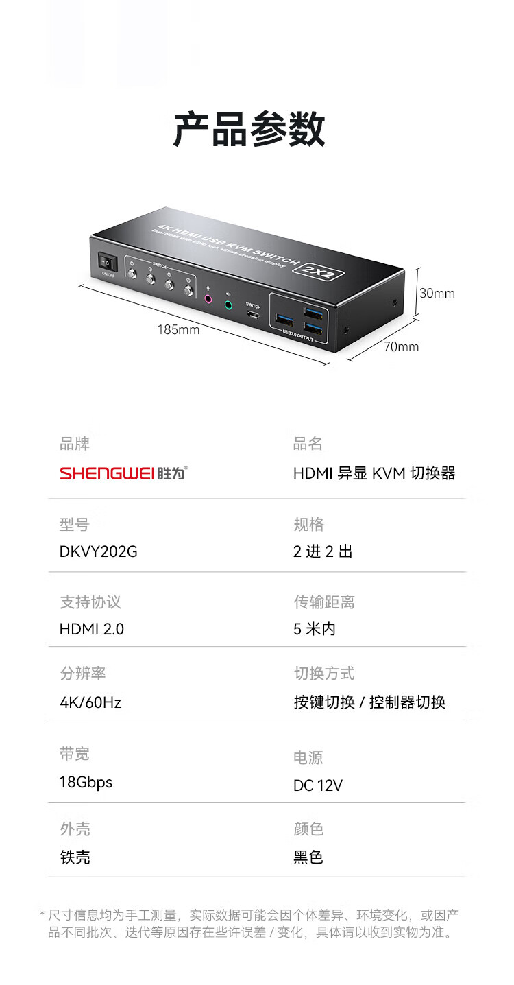 胜为 异显KVM切换器 DKVY202G 2进2出 4K60HZ 1个