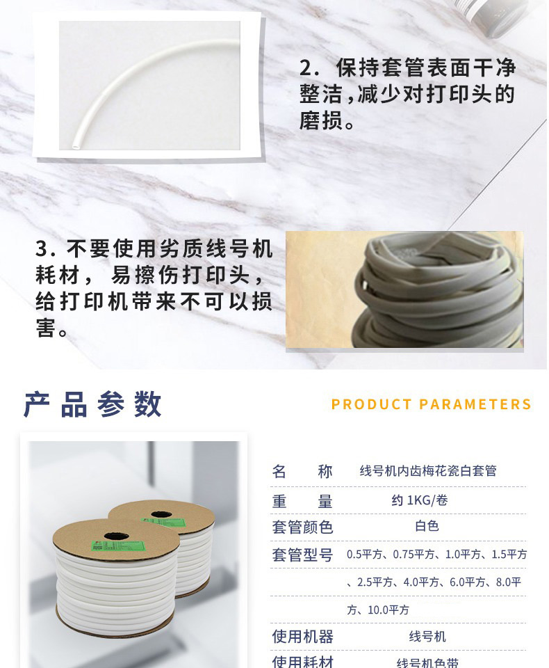 硕方 线号机内齿梅花瓷白套管 2.5平方 内径φ3.7-4.0mm 70米 1卷